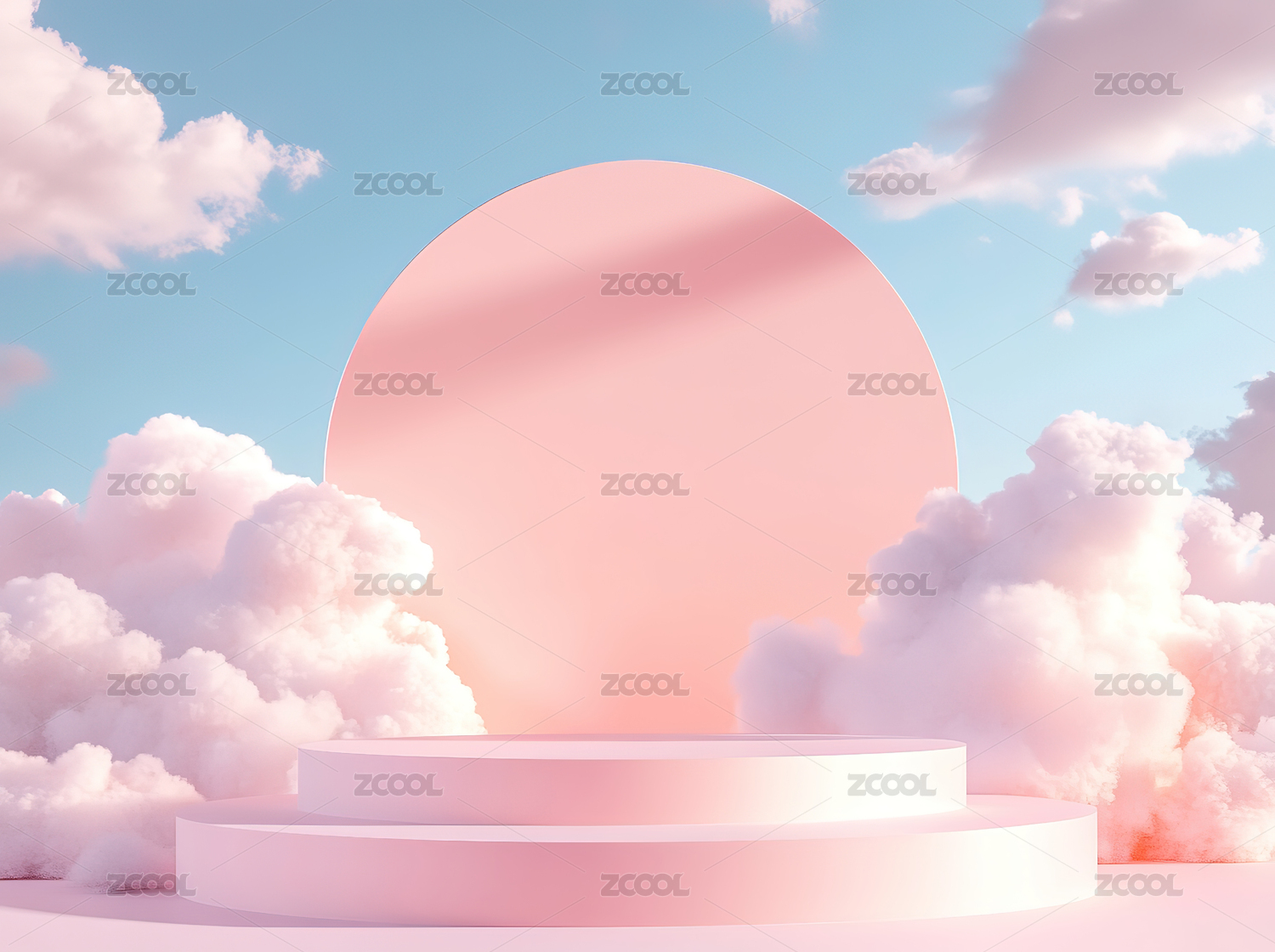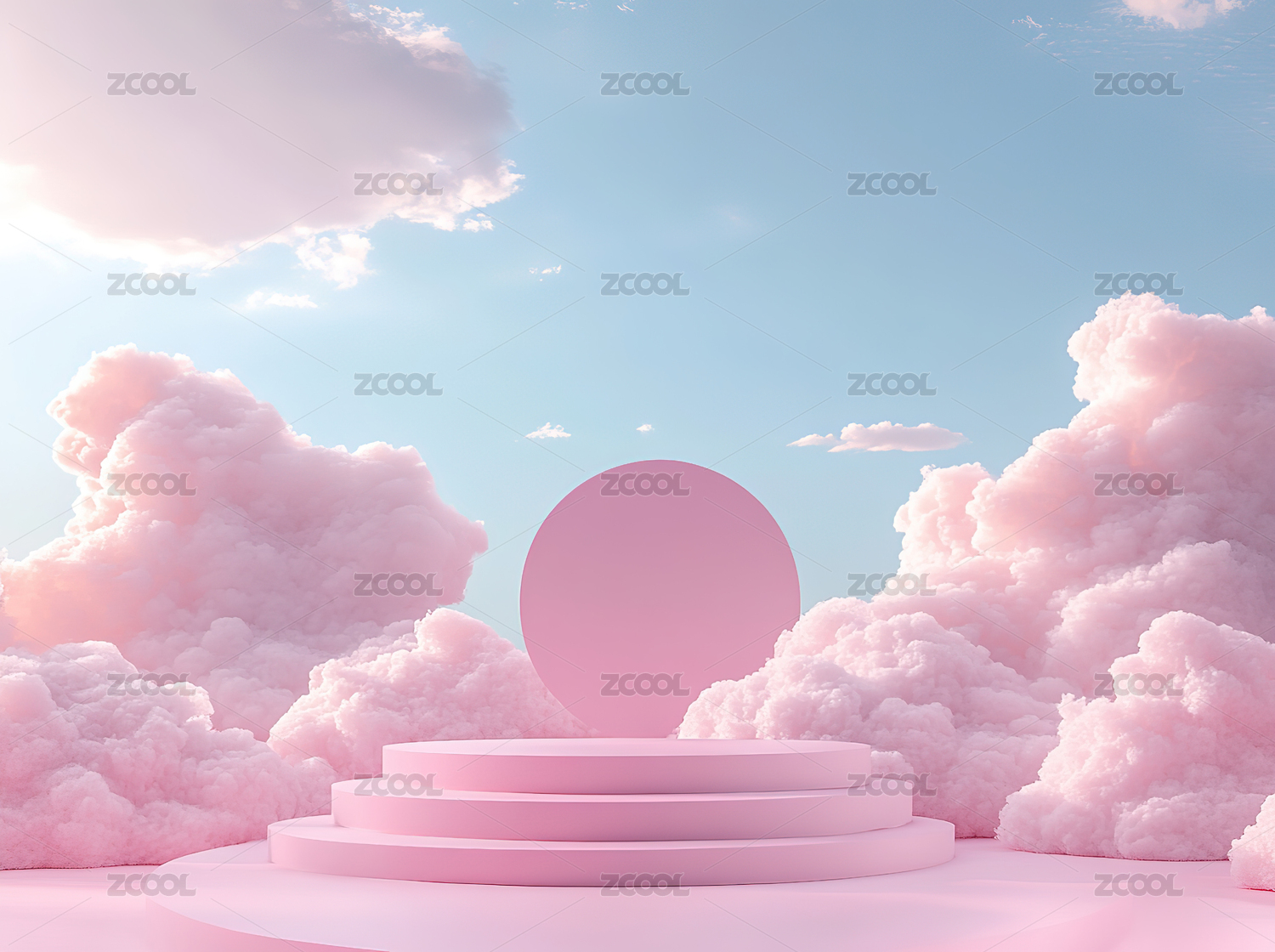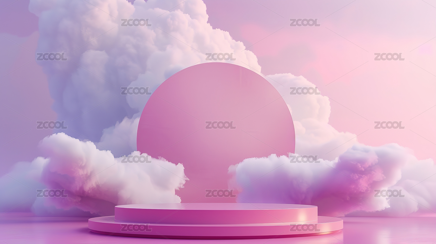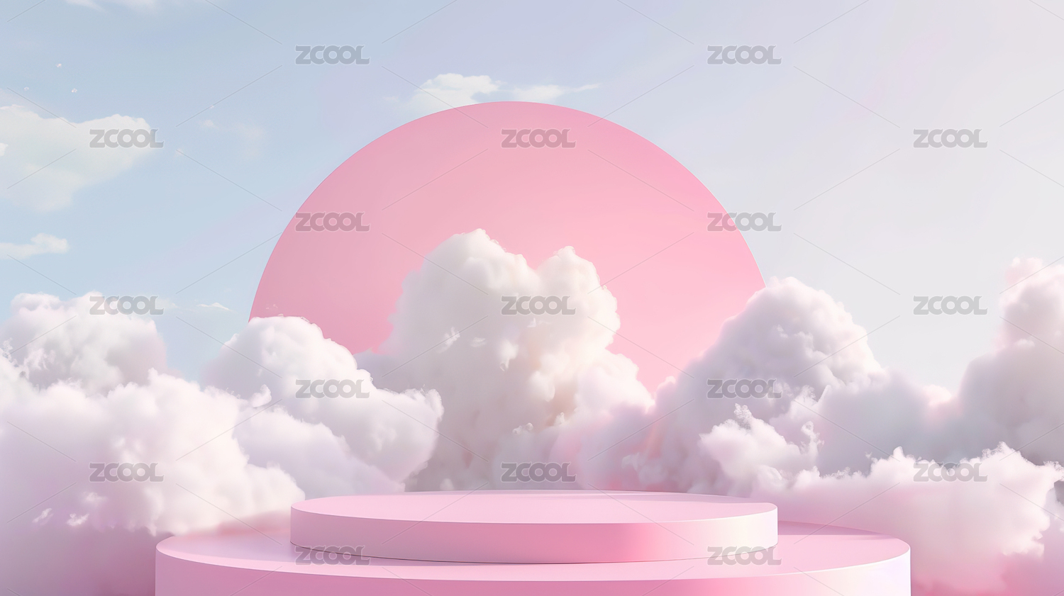 粉色云朵背景的圆形舞台