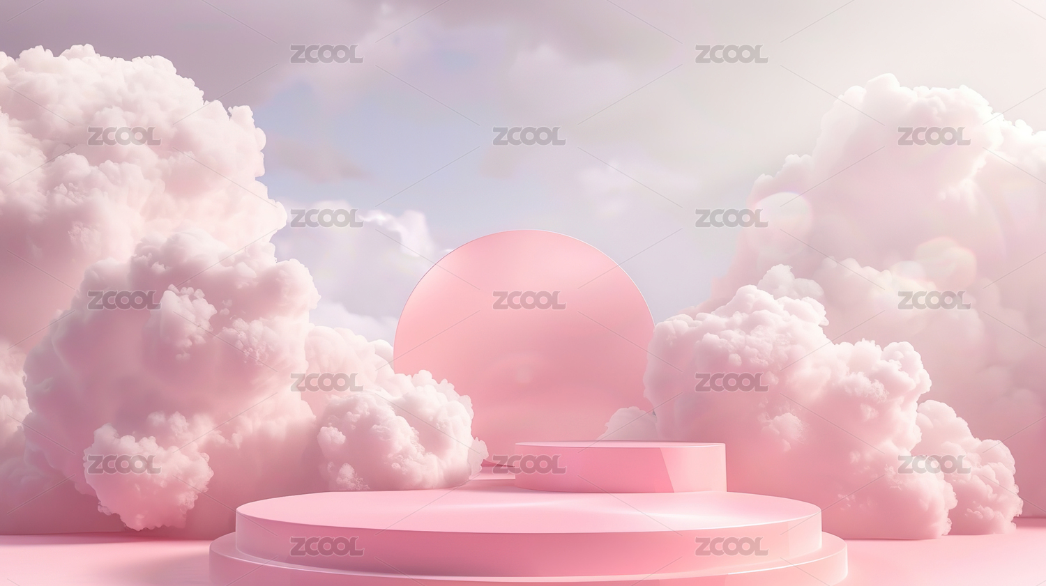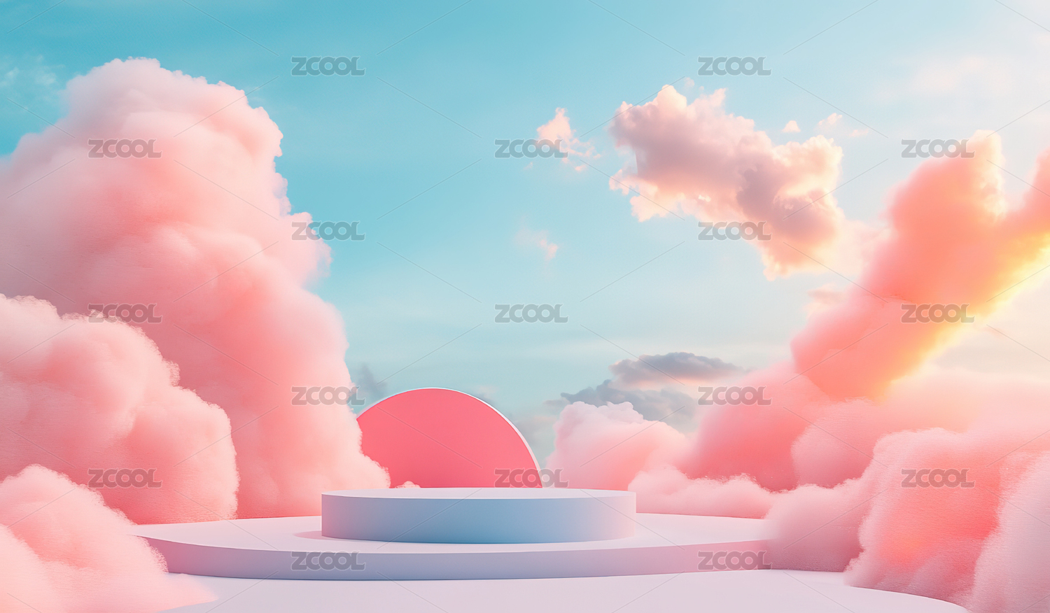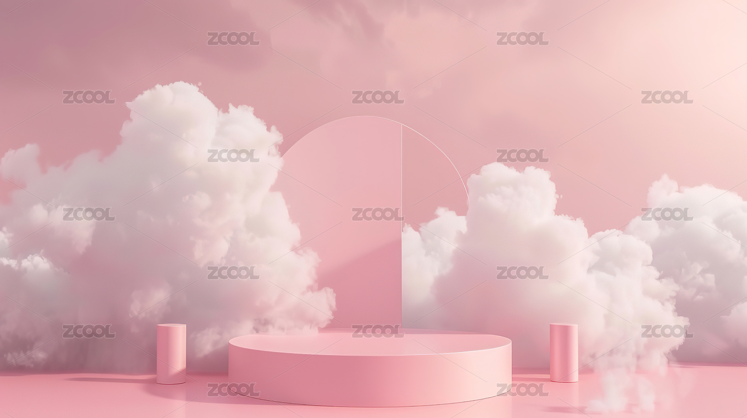粉色云朵背景的圆形舞台