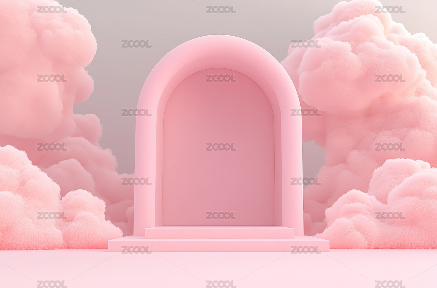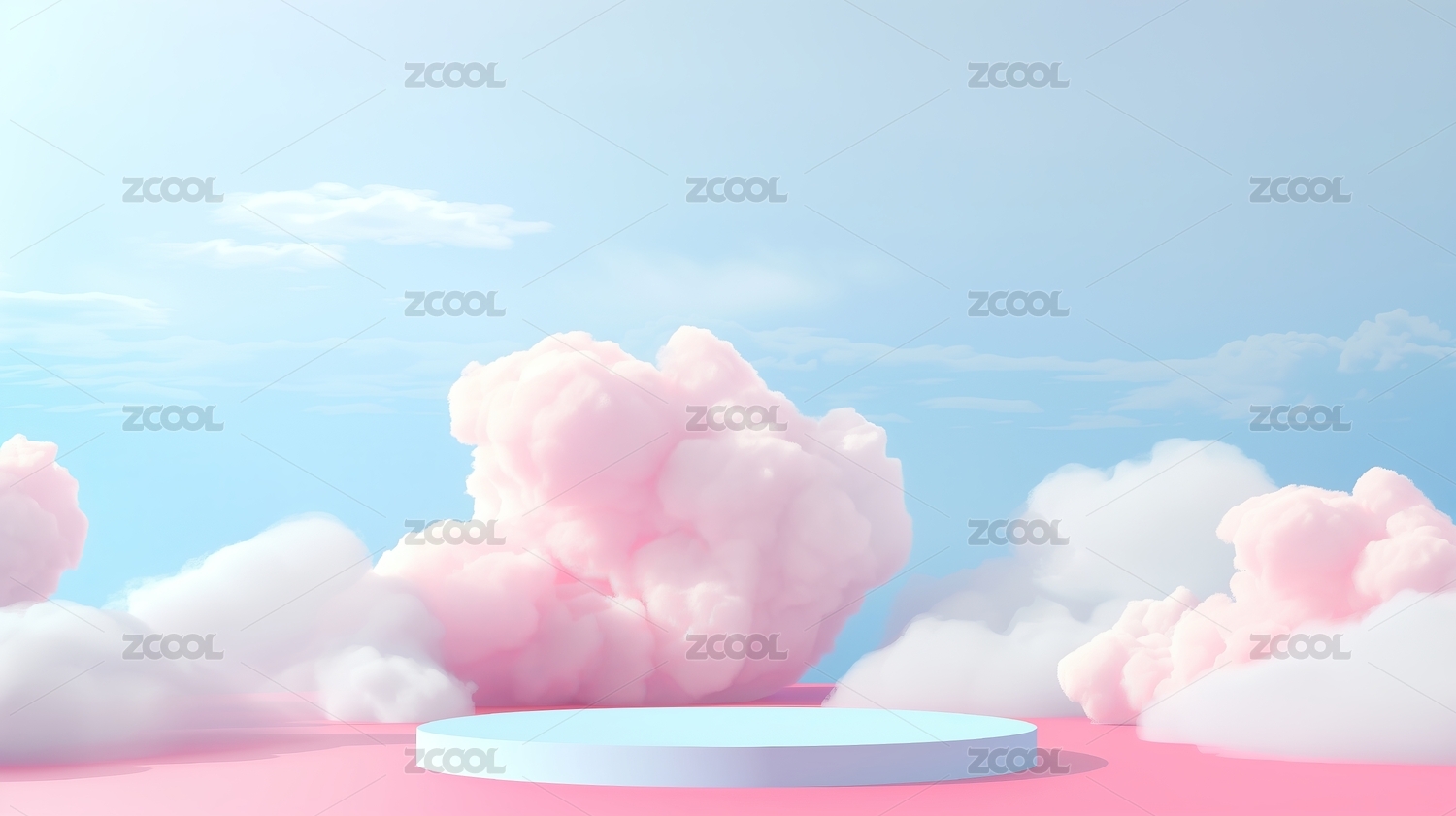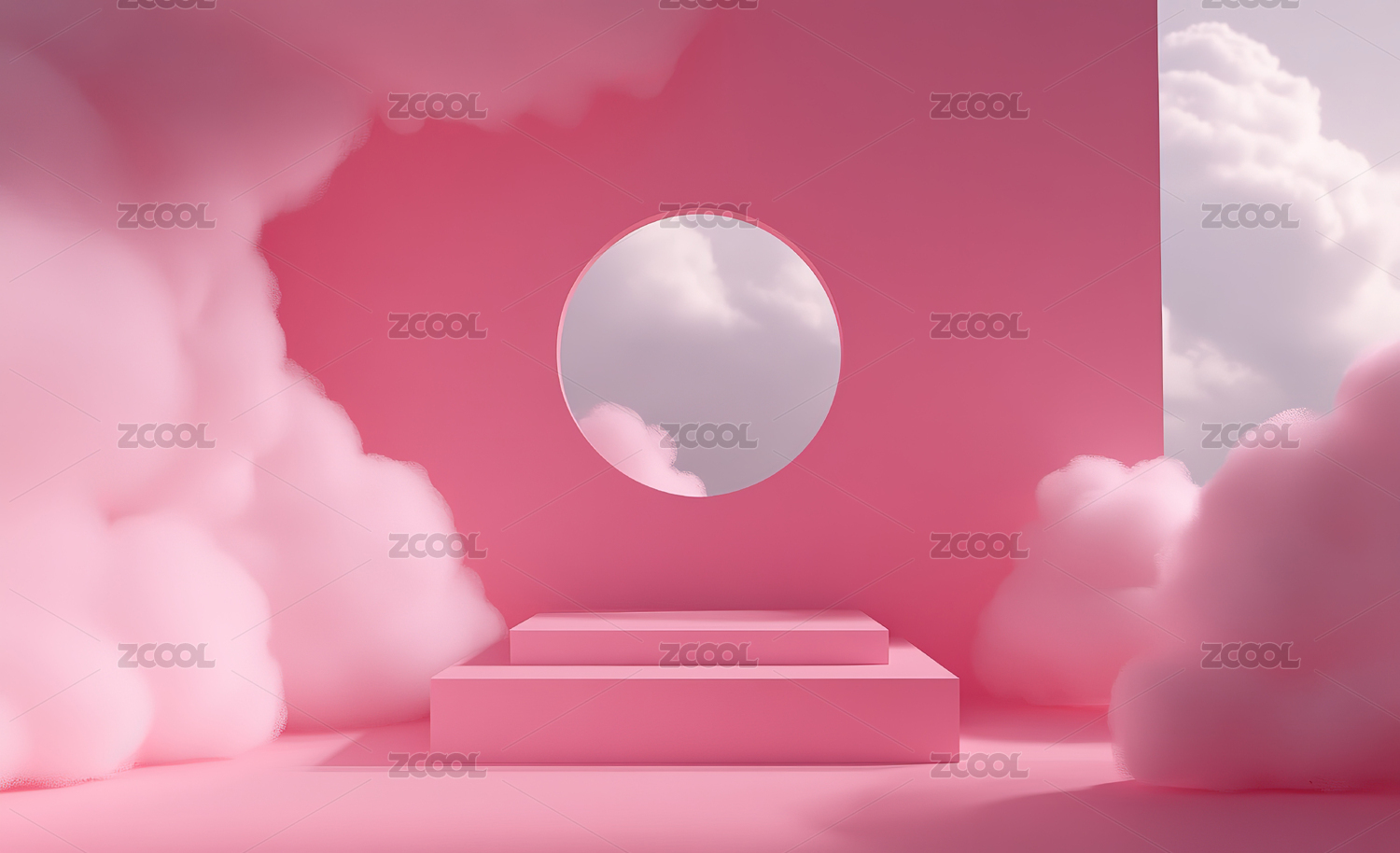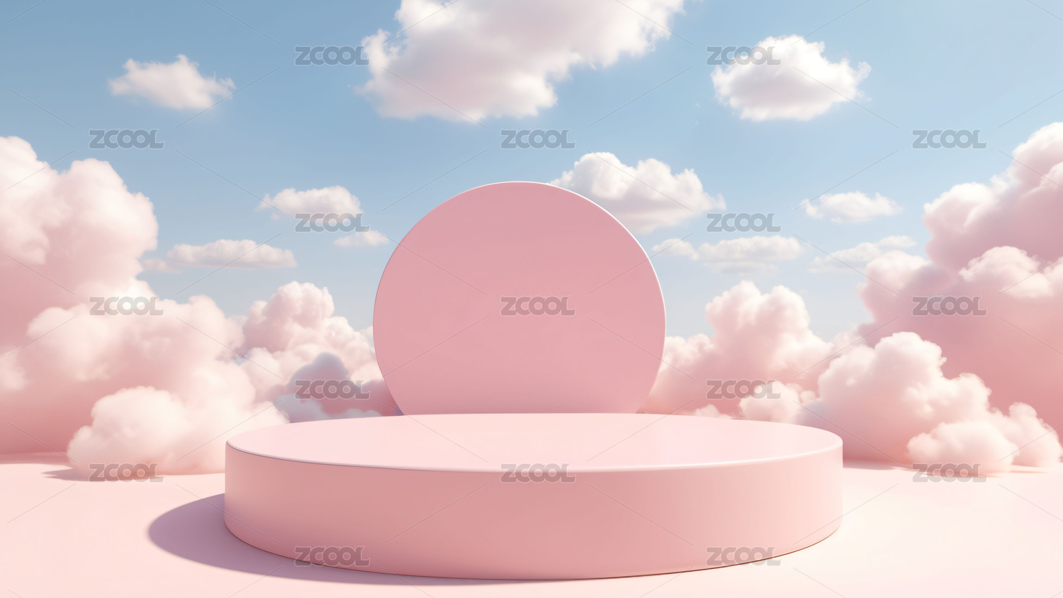 粉色云朵背景的圆形舞台