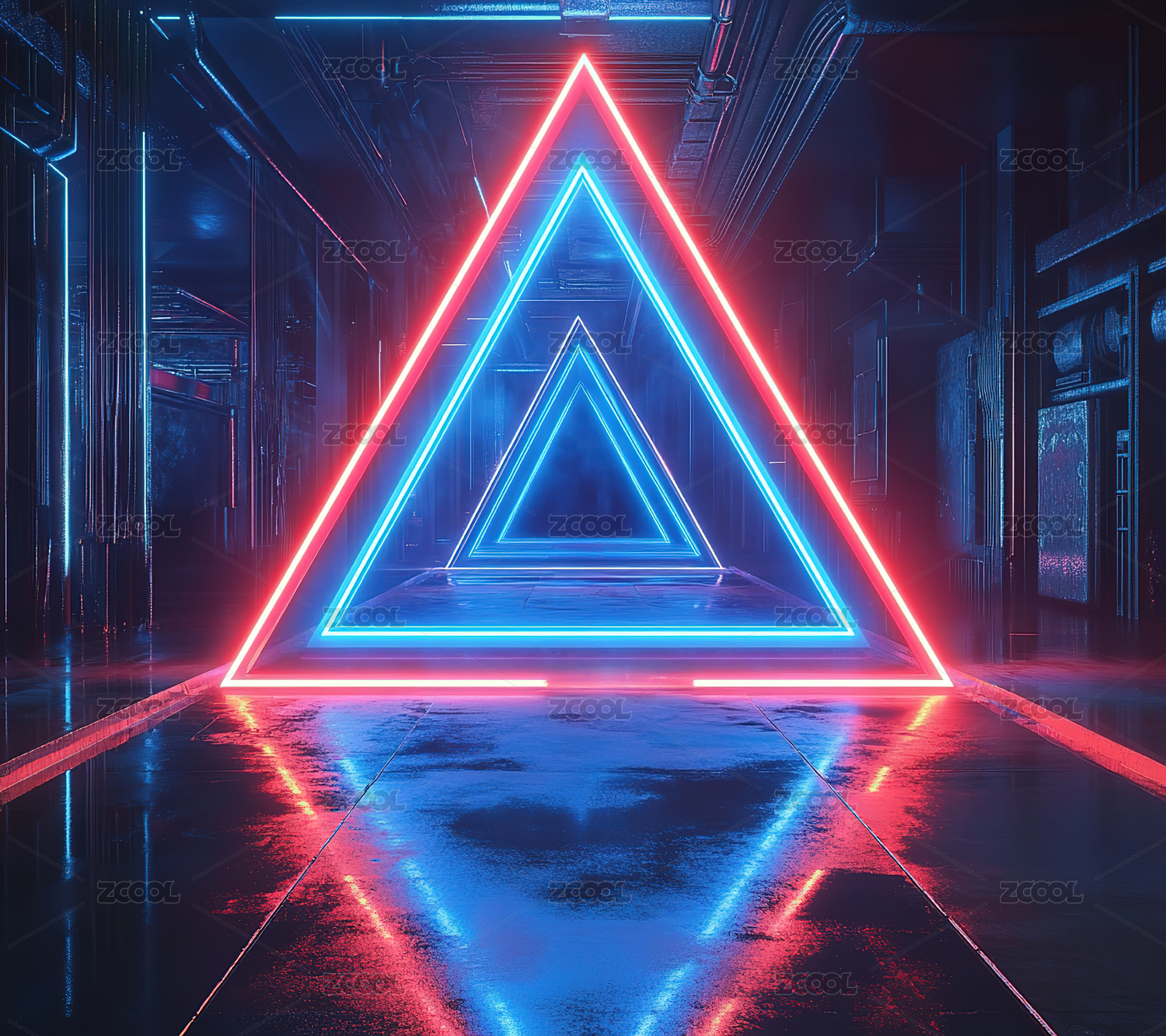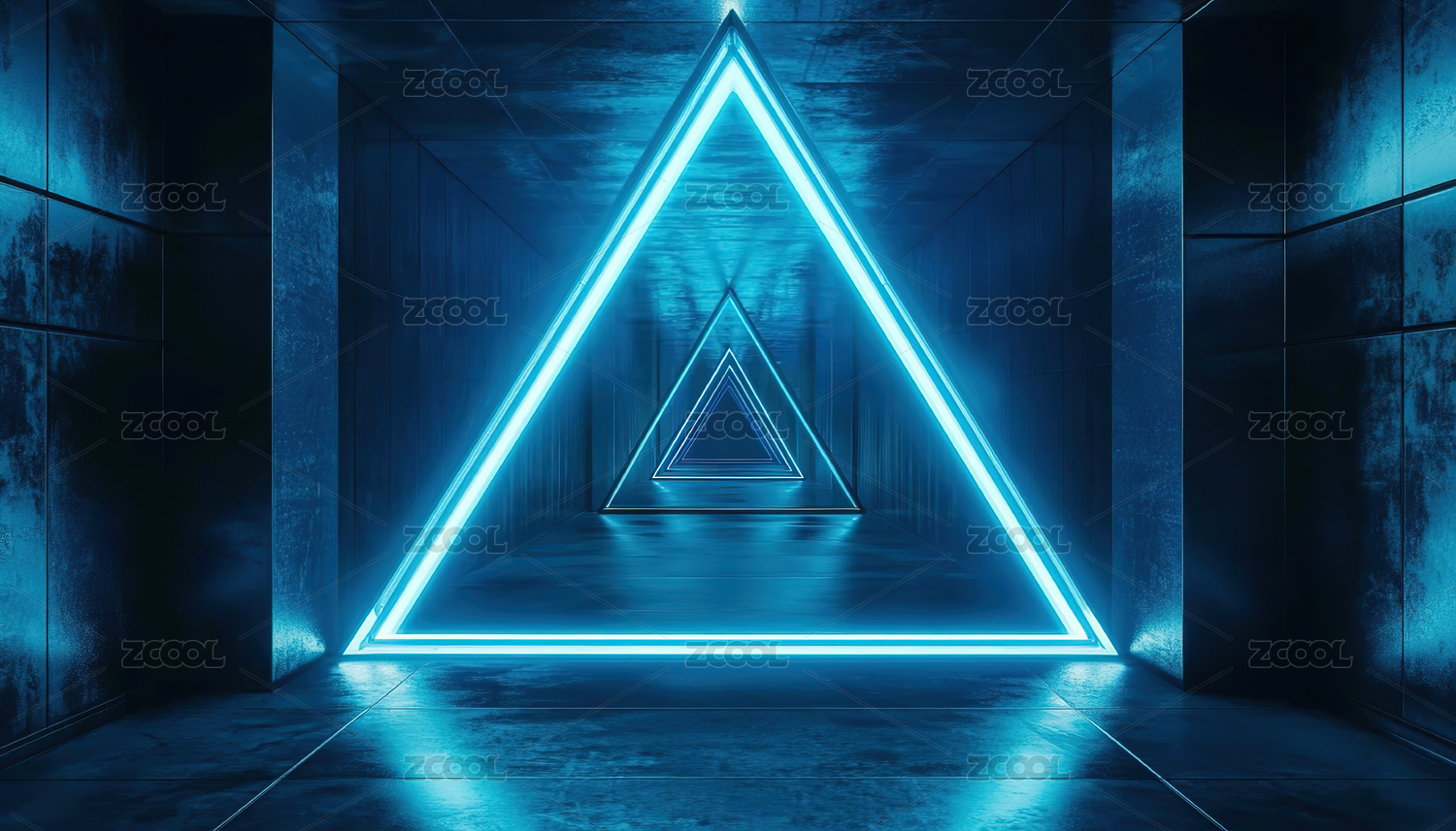 未来科技走廊中的发光三角形