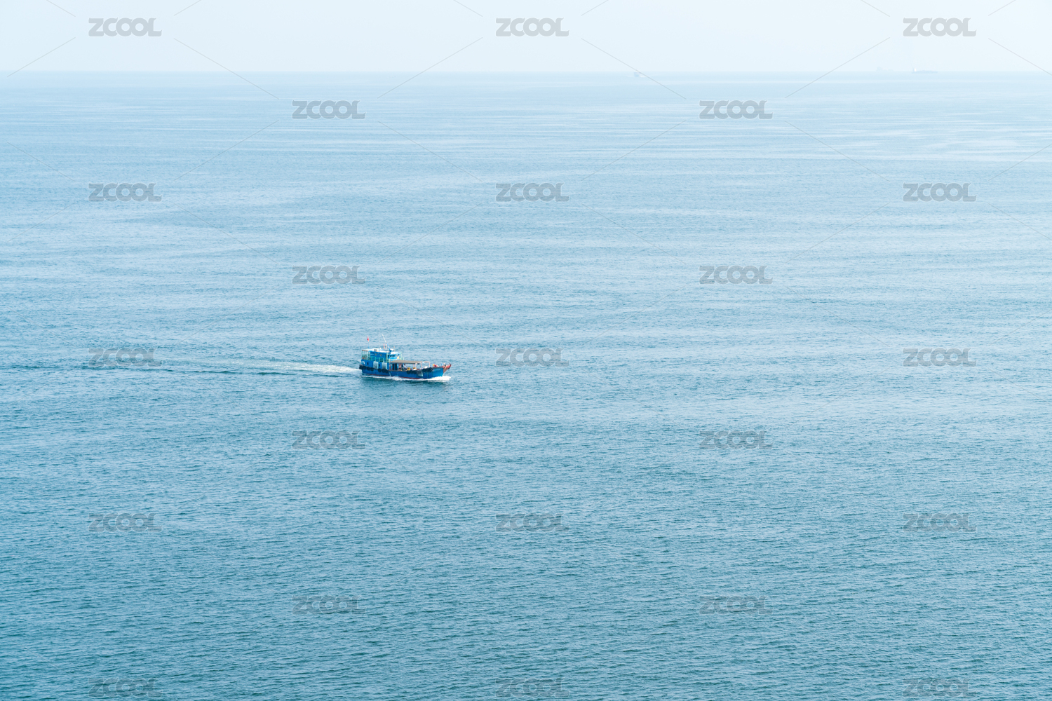 蓝色海面白色小船