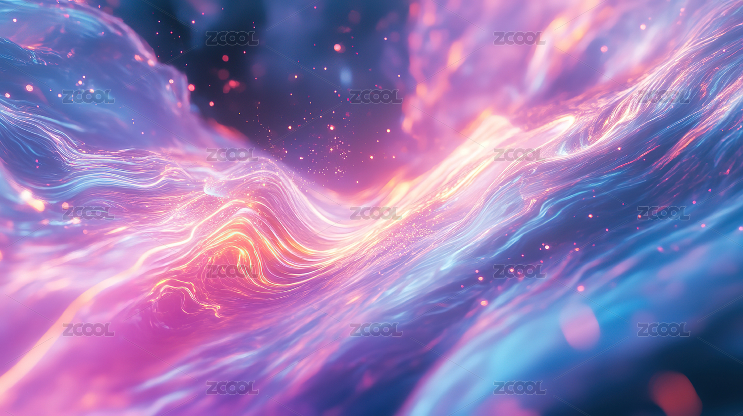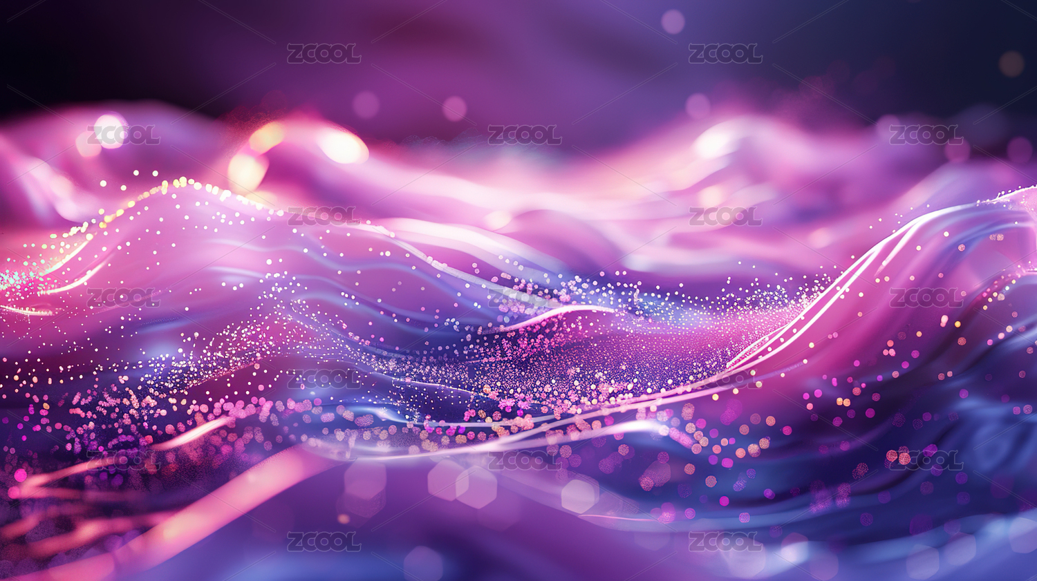 蓝紫色波浪曲线金色光点背景