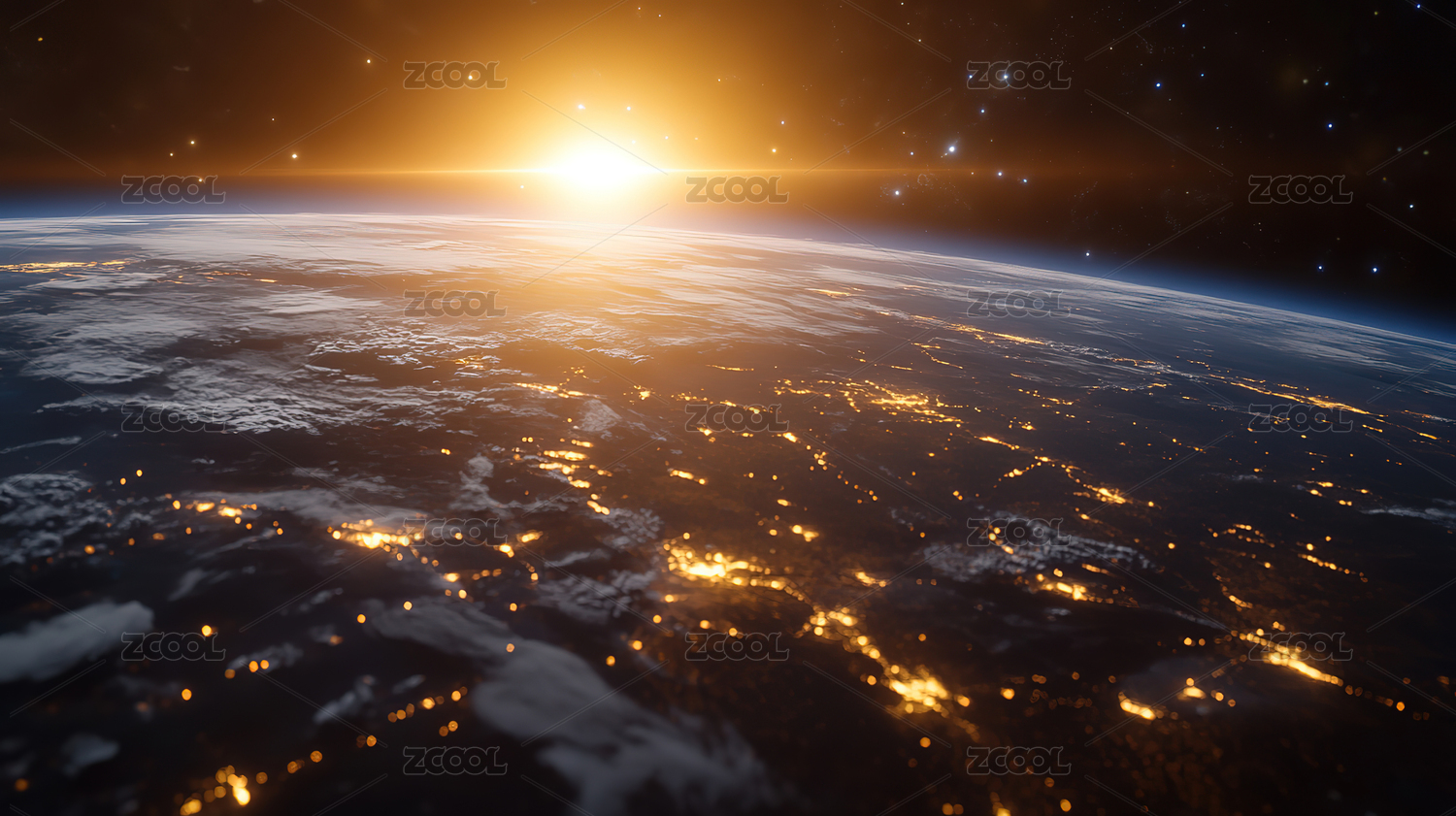 地球壮丽日出太空场景
