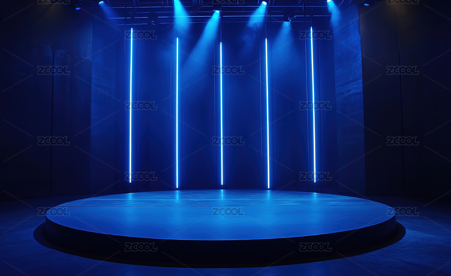 圆形平台蓝色霓虹灯