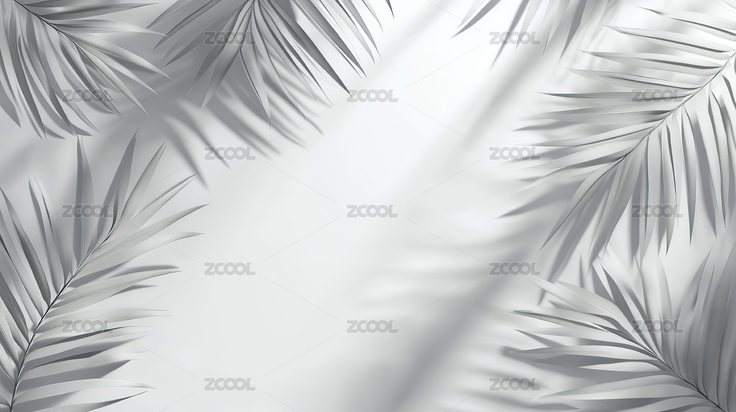 黑白植物叶片交织呈现简约艺术的自然光影质
