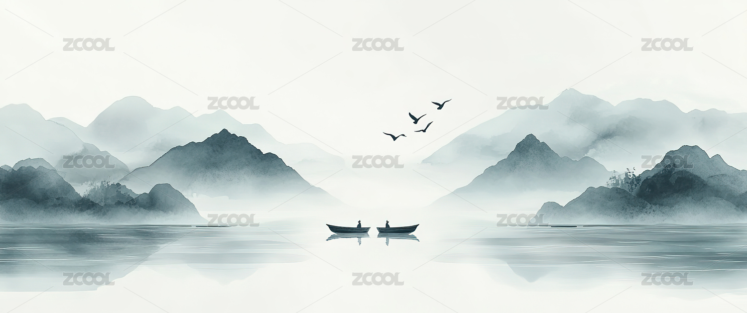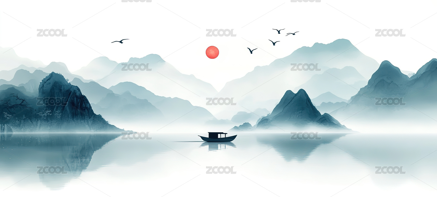 户外,插画,中国文化,中国画,风景,国风,新中式风格,高山,背景,自然