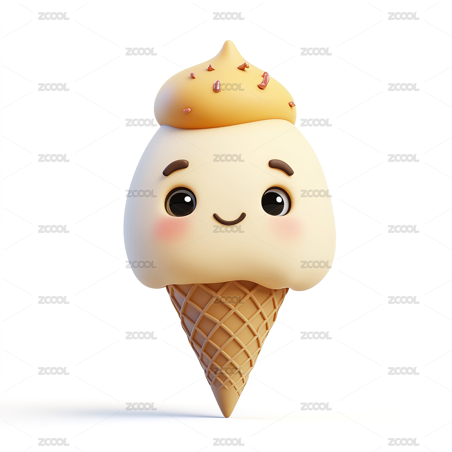 彩虹冰淇淋锥3d渲染,3D渲染的冰淇淋