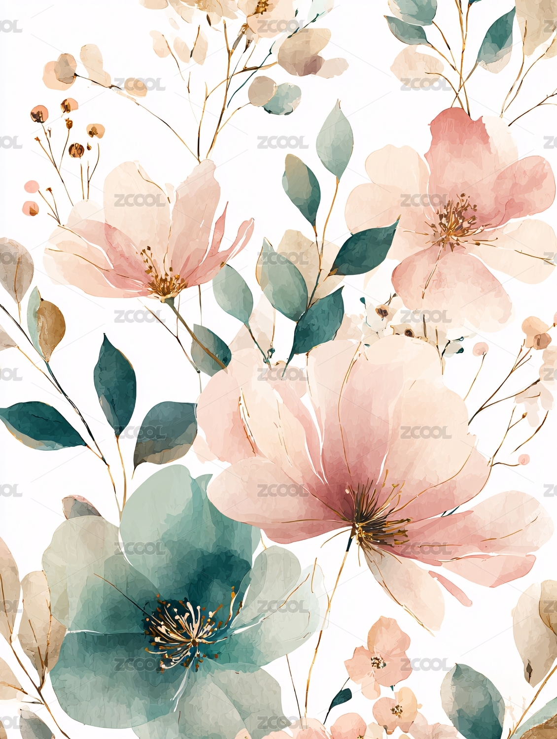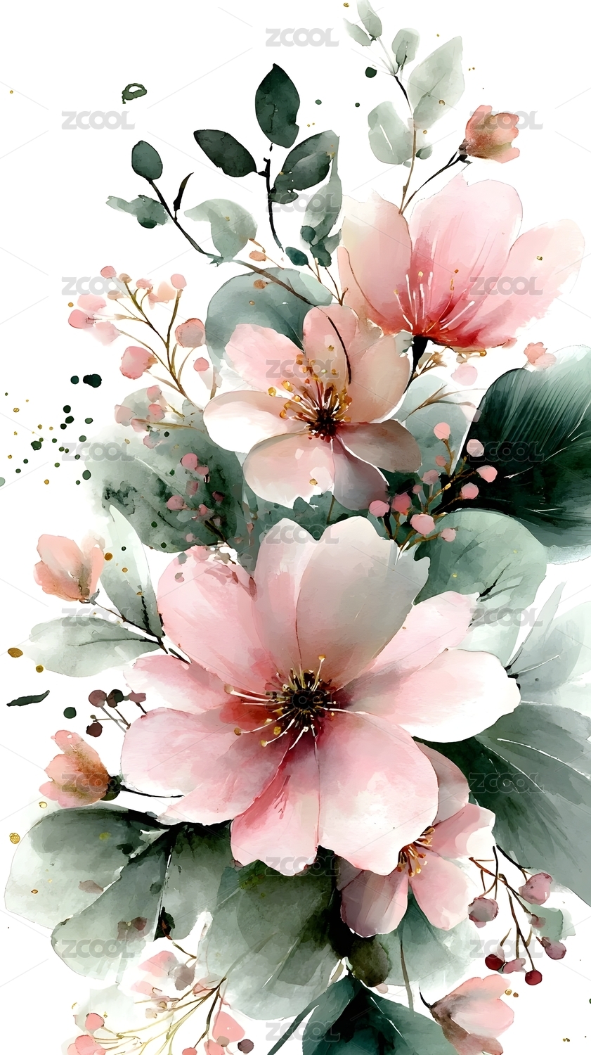 复古水彩装饰婚礼卡鲜花插画海报背景