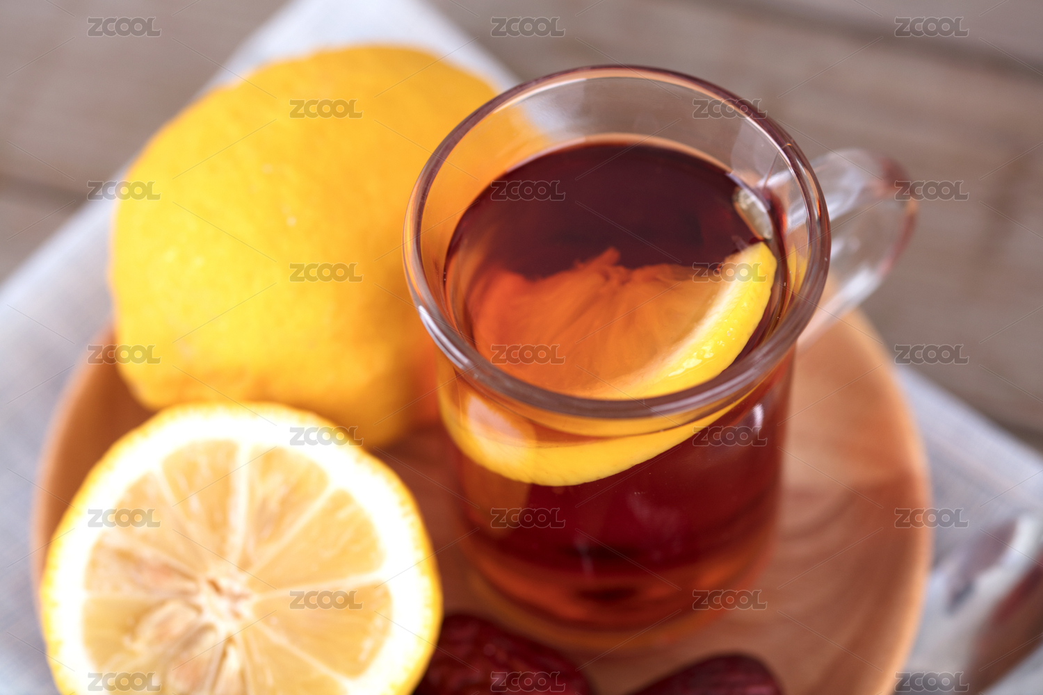 桌上的柠檬和柠檬红茶