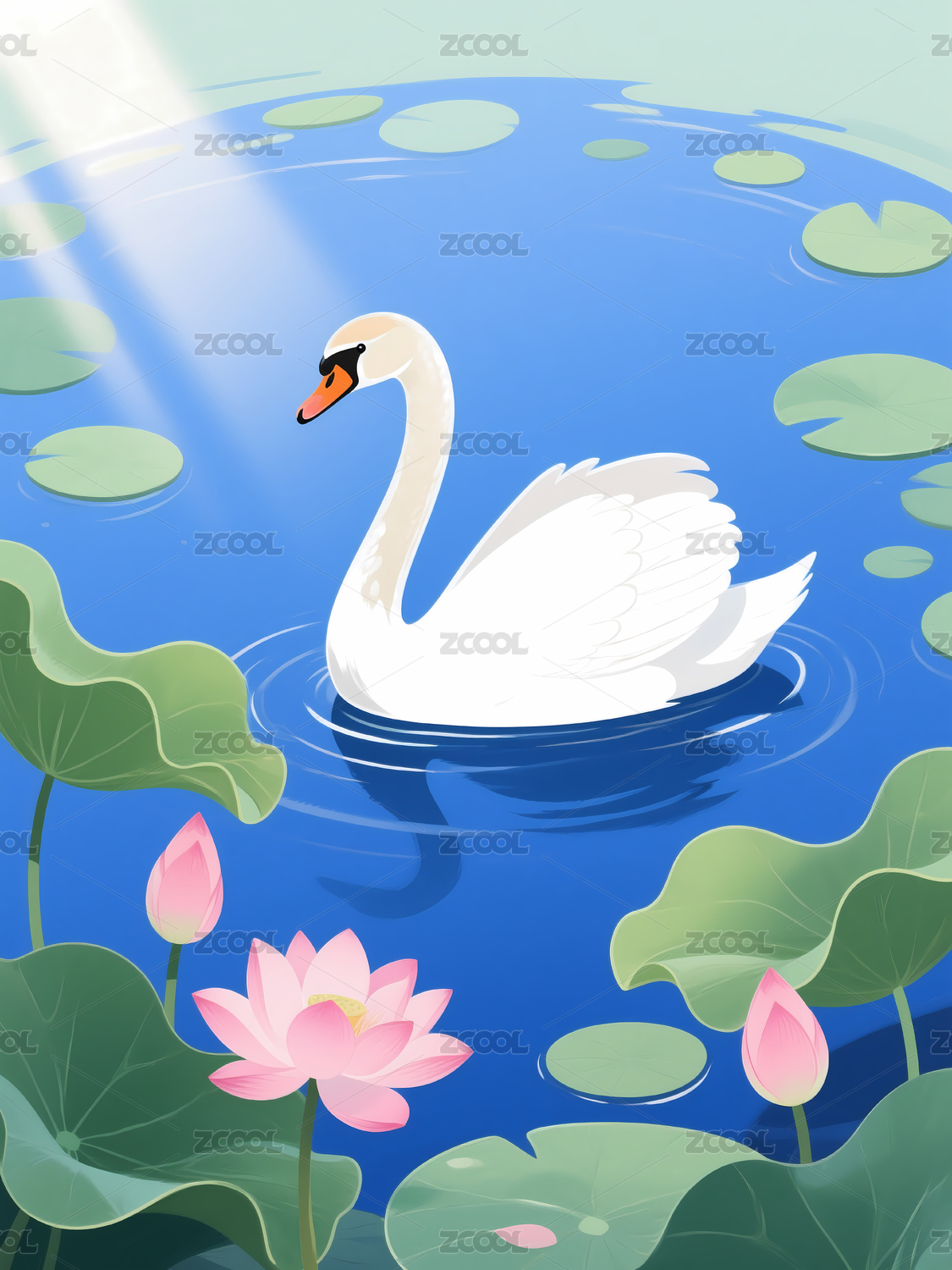 中国风大暑节气荷花白鹭河流捕鱼插画