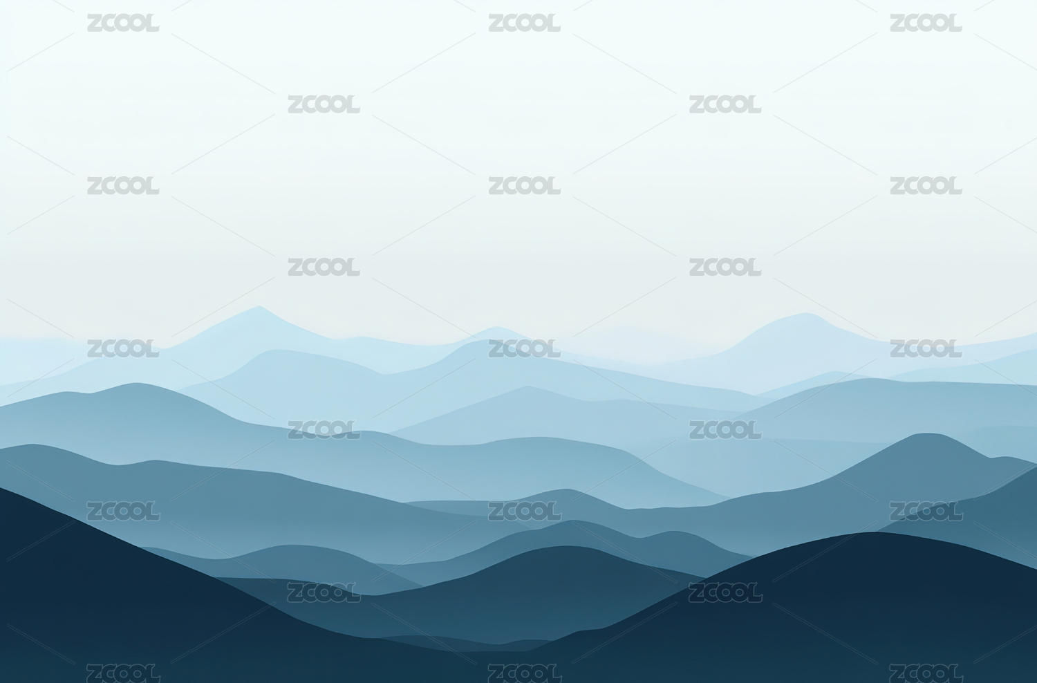 淡蓝背景下群山层叠朦胧展现诗意水墨山水意