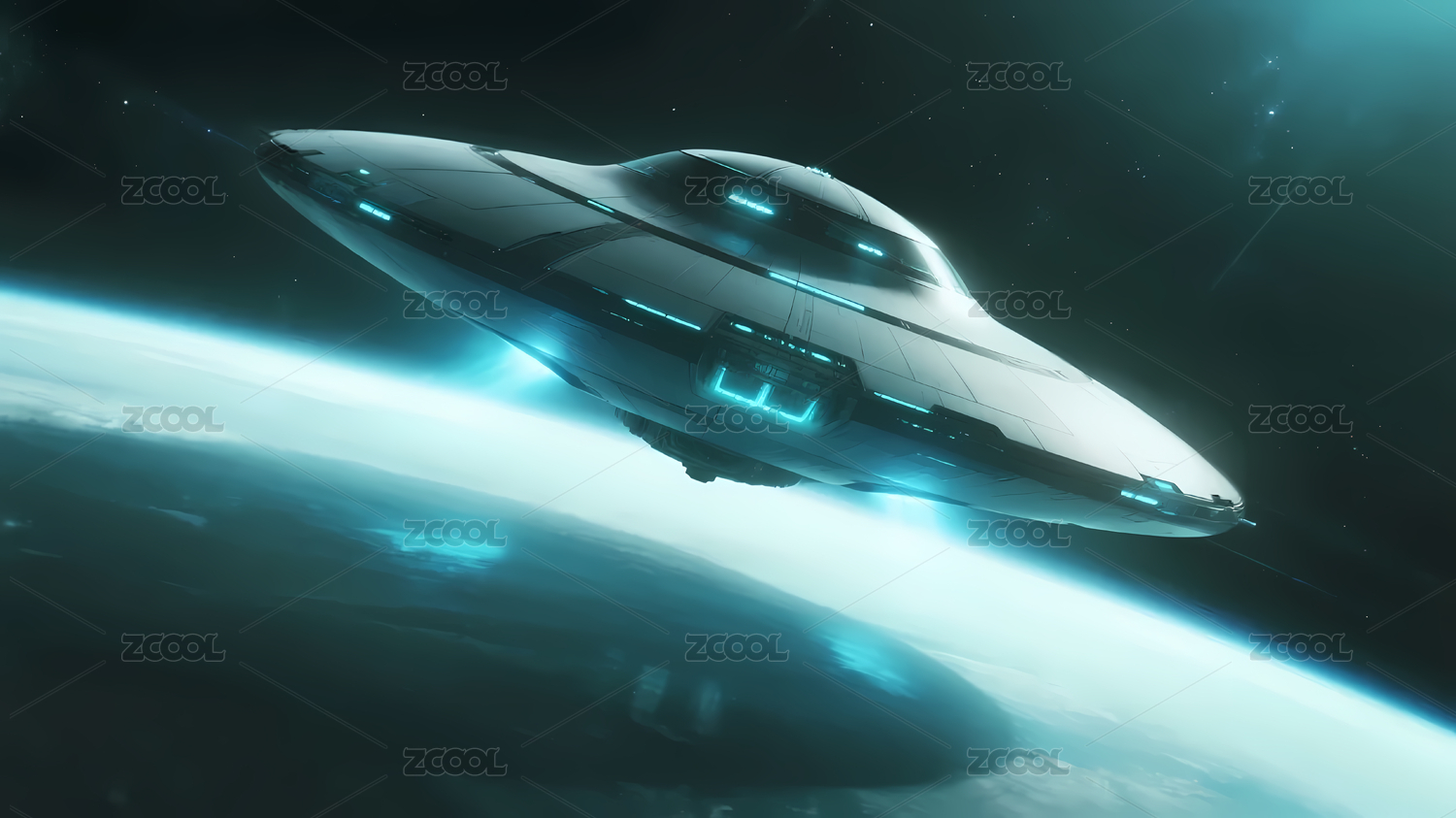 蓝色星际飞船疾驰穿梭,红色光芒映照宇宙