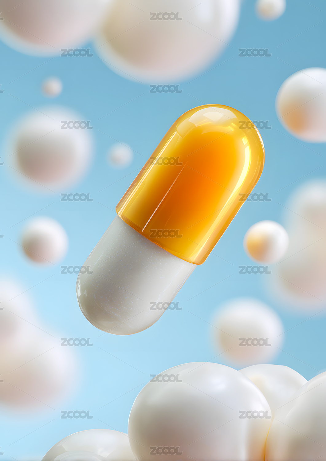 蓝色,橙色,色彩,背景,设计,3D渲染,药丸,胶囊,悬浮,立体