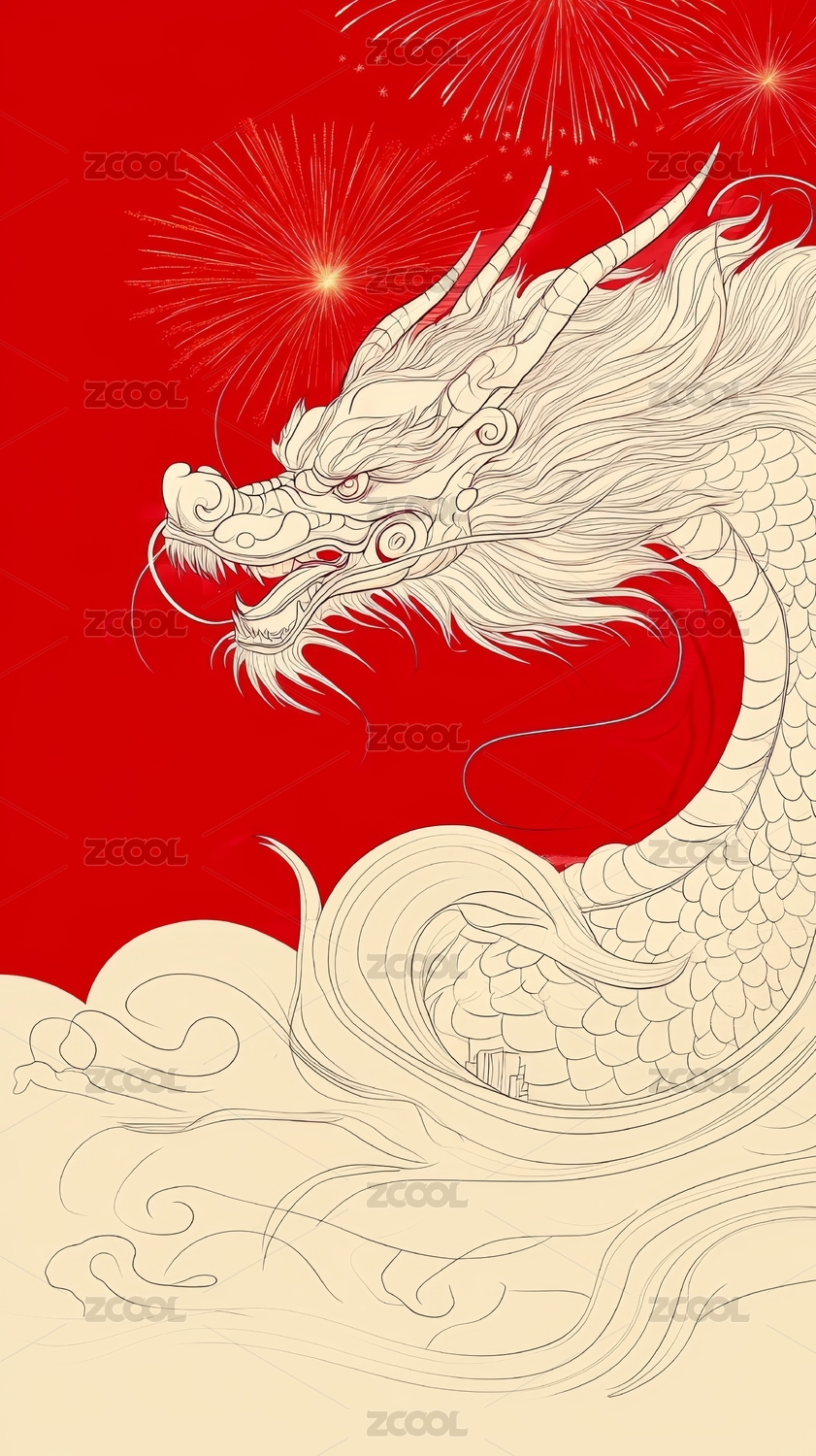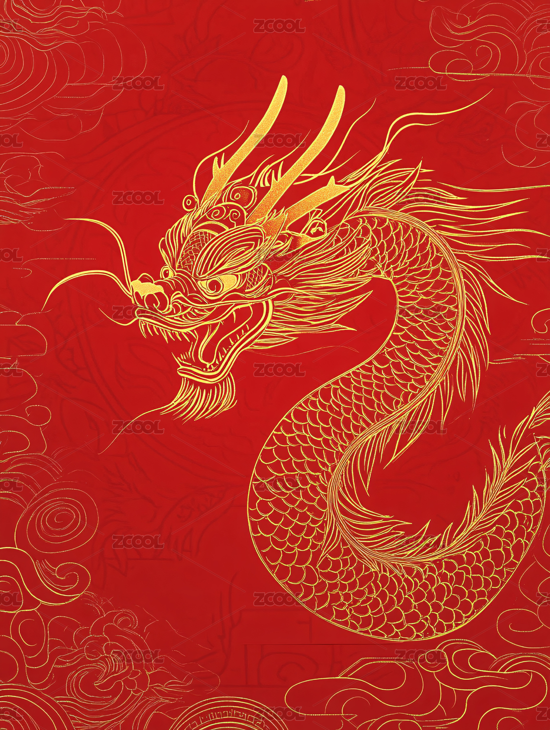 抽象,龙,龙年,生肖,烫金,东方,龙纹,插画,传统,春节