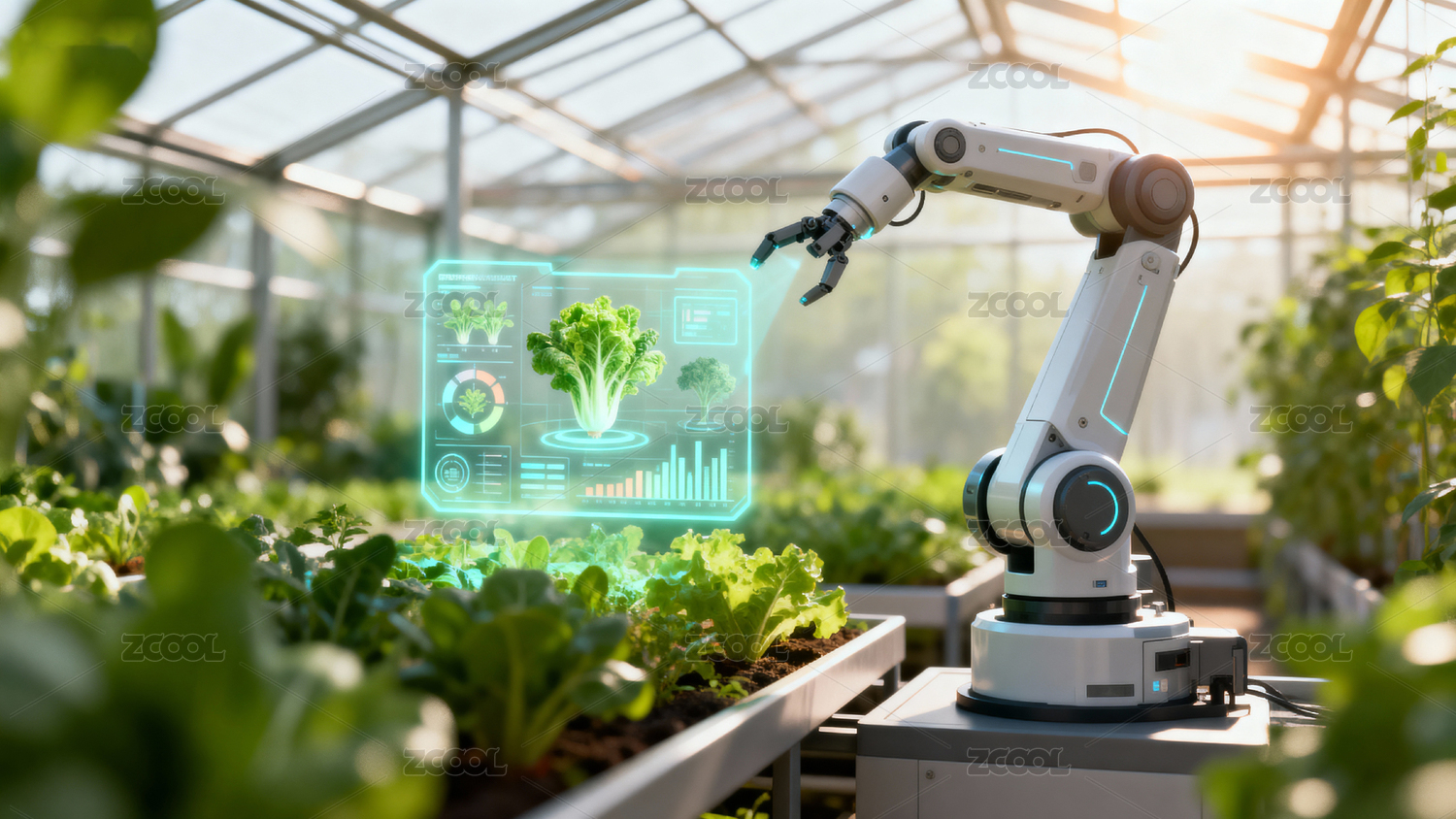 智能机械臂正在给蔬菜浇水,智能种植概念插