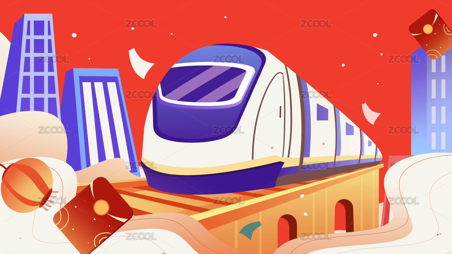 卡通,插画,闪屏,春运,火车,动车,高铁,春节,回家,新年