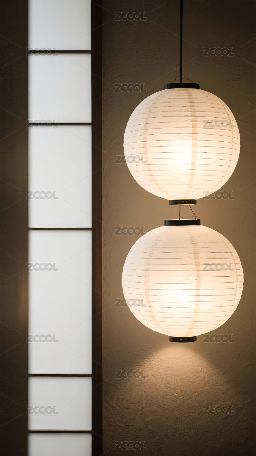 悬挂在和室室内的白色灯笼