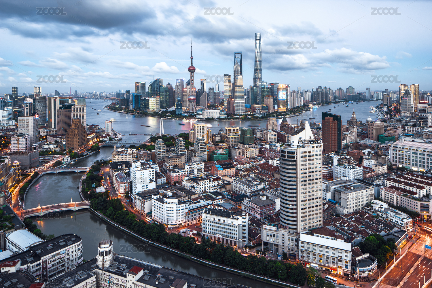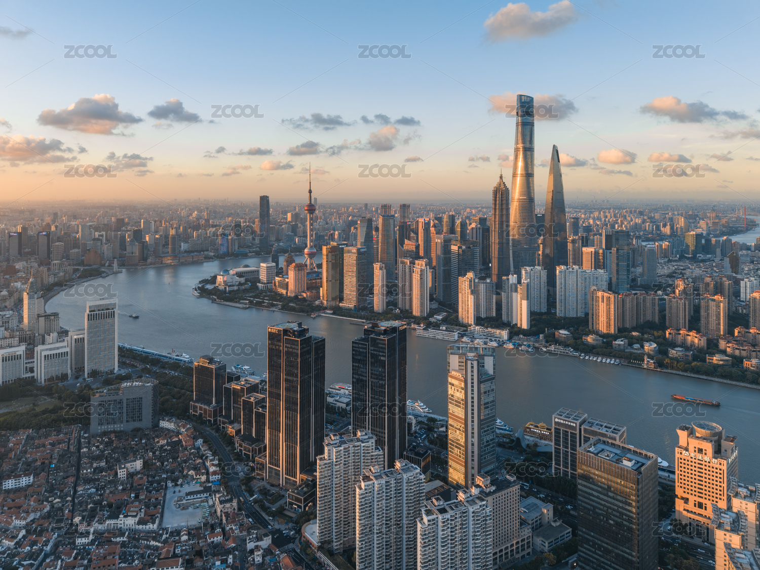 上海城市风光外滩陆家嘴建筑群天际线全景图
