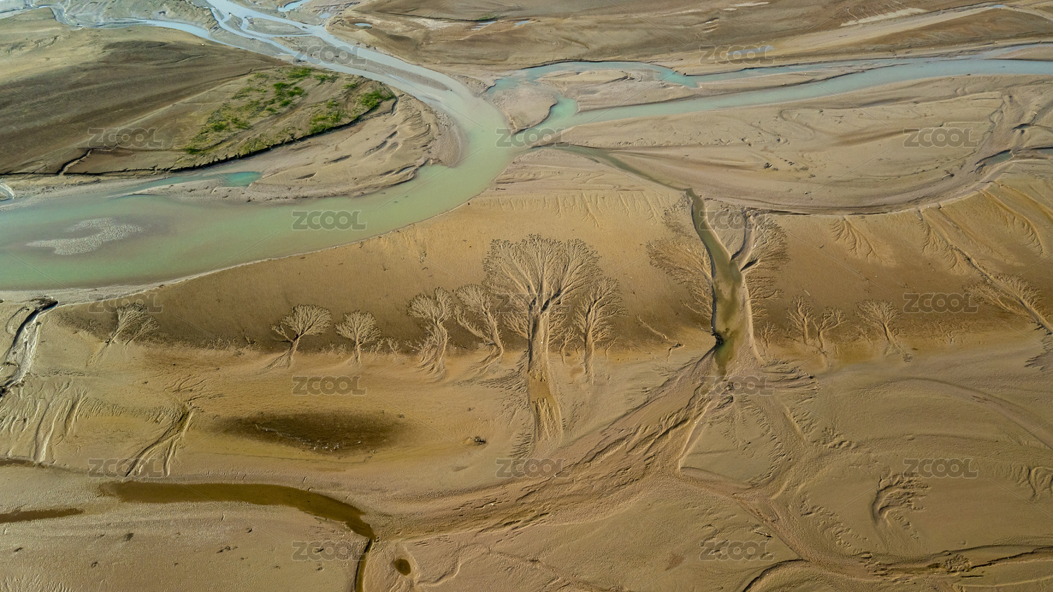 中国新疆喀什塔合曼湿地秋季傍晚航拍