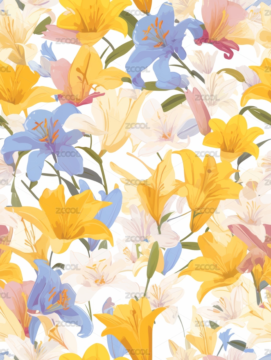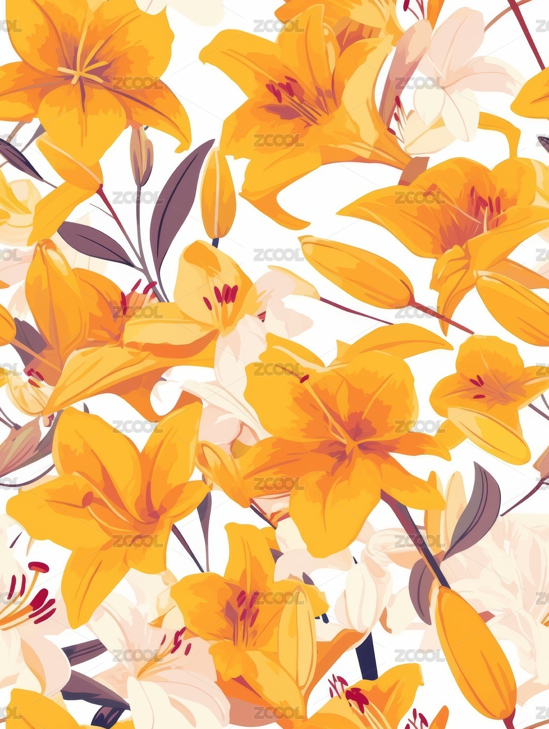 百合花插画无缝图