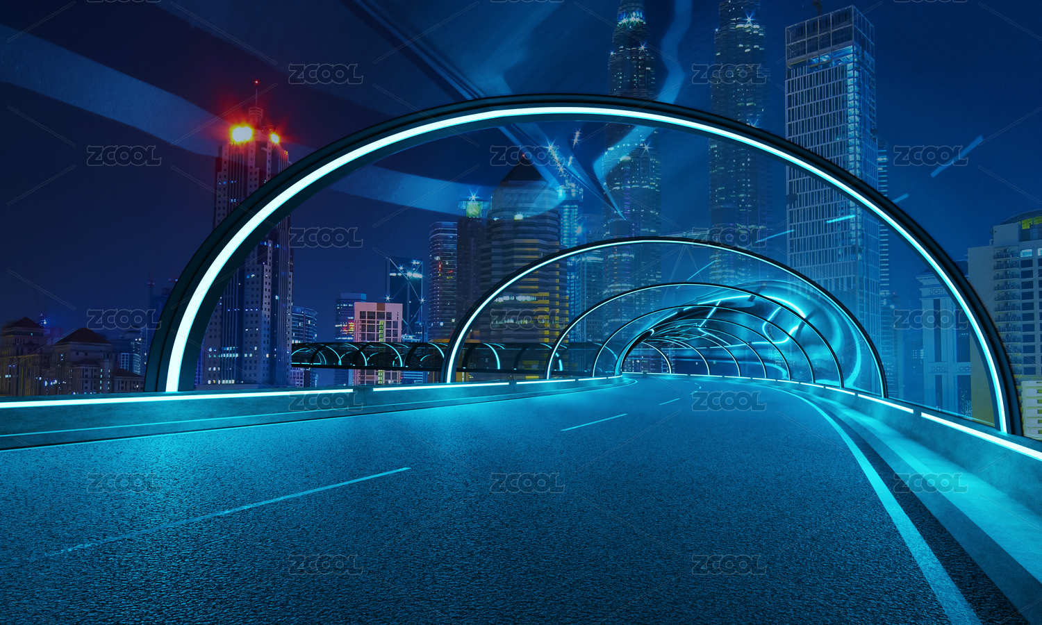 科幻夜景城市隧道公路