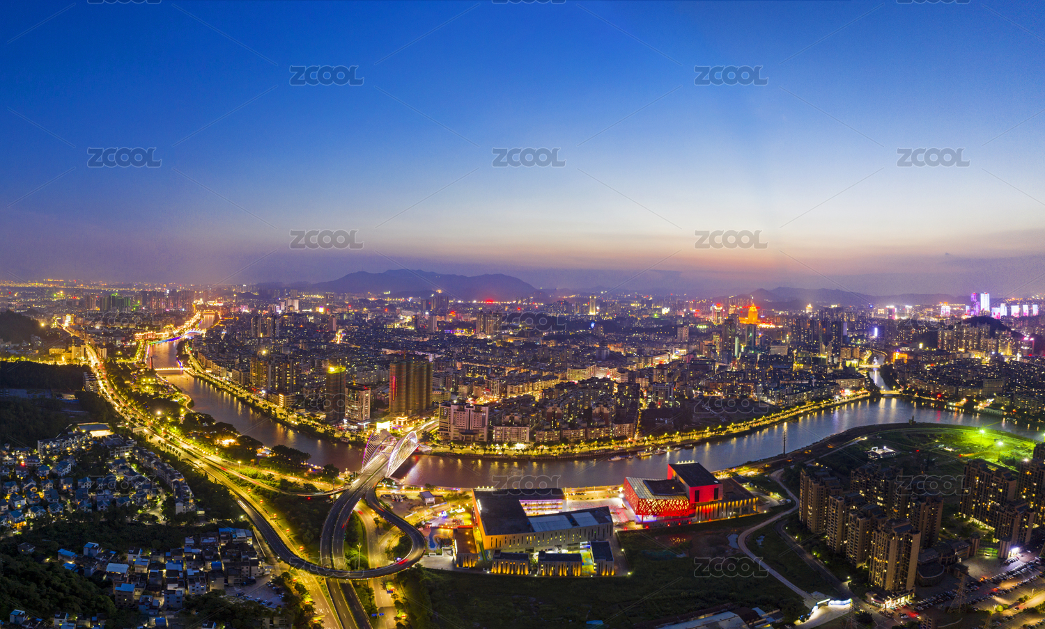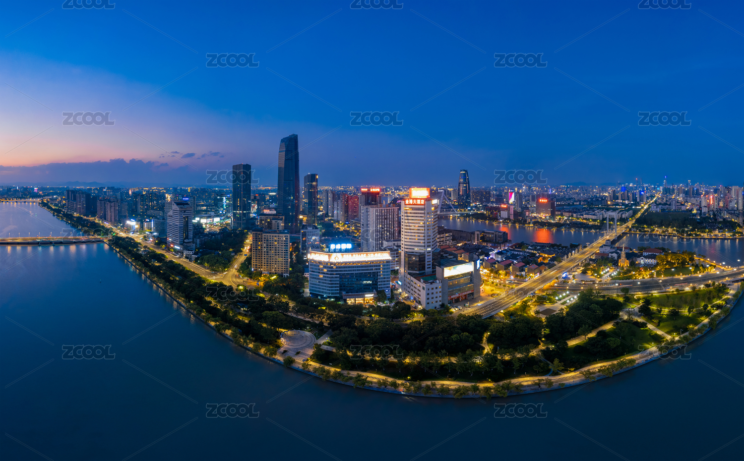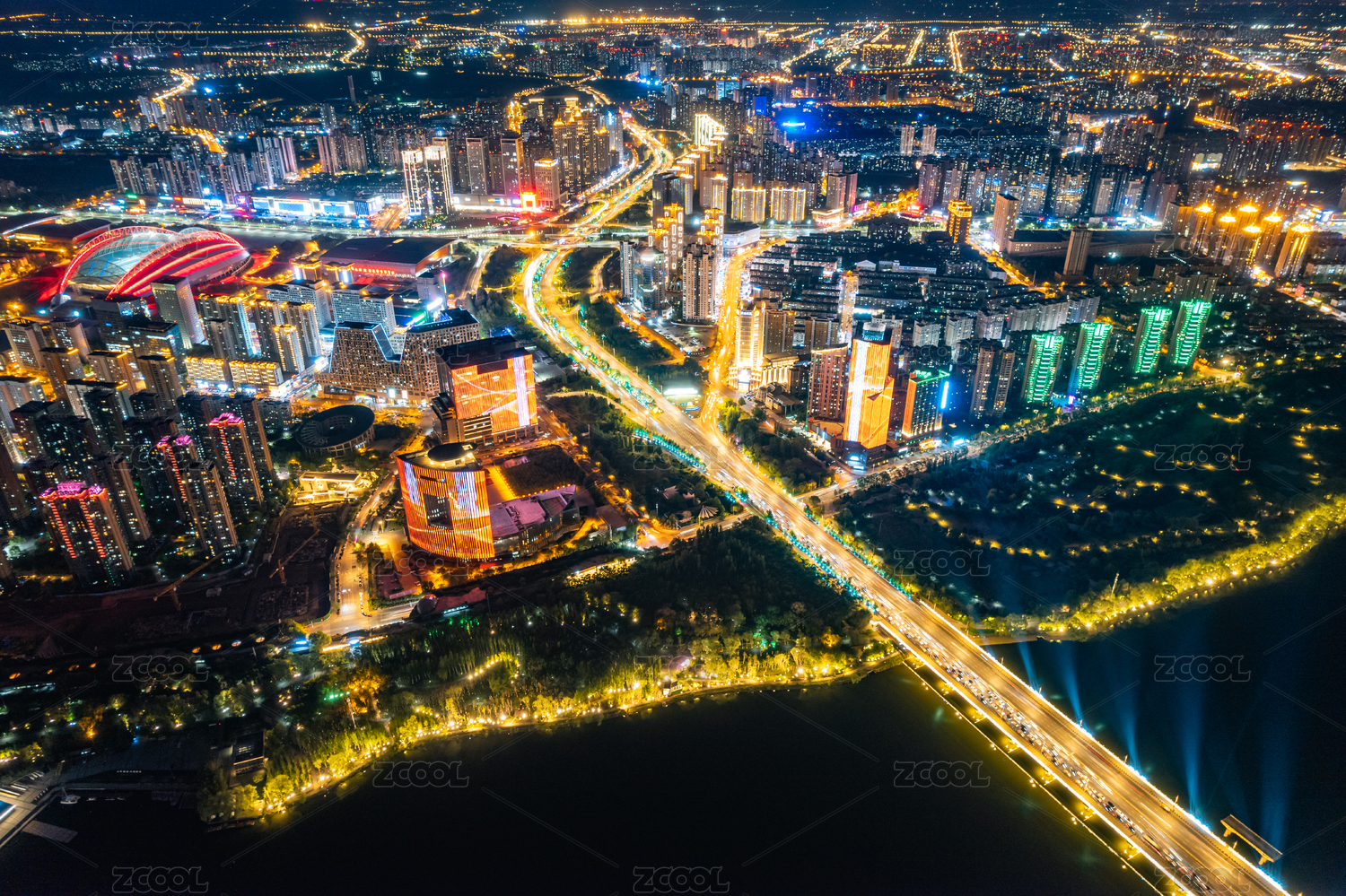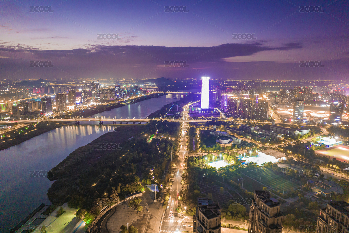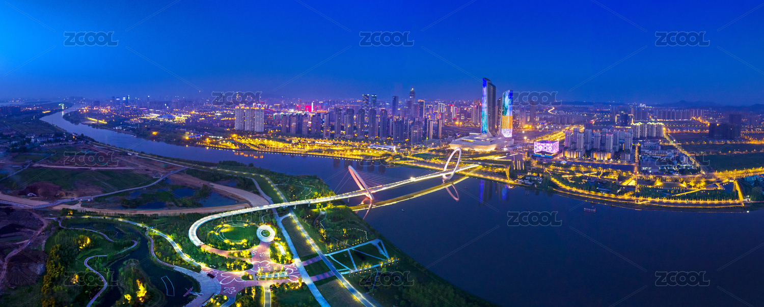 中国湖南省长沙市橘子洲湘江大桥夜景航拍