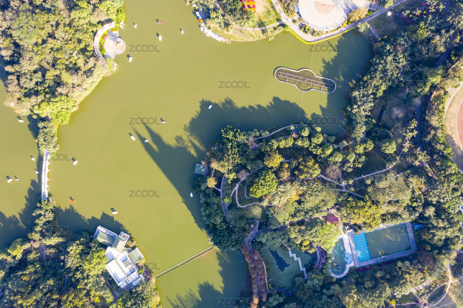 航拍中国广东佛山千灯湖公园湖泊水体景观
