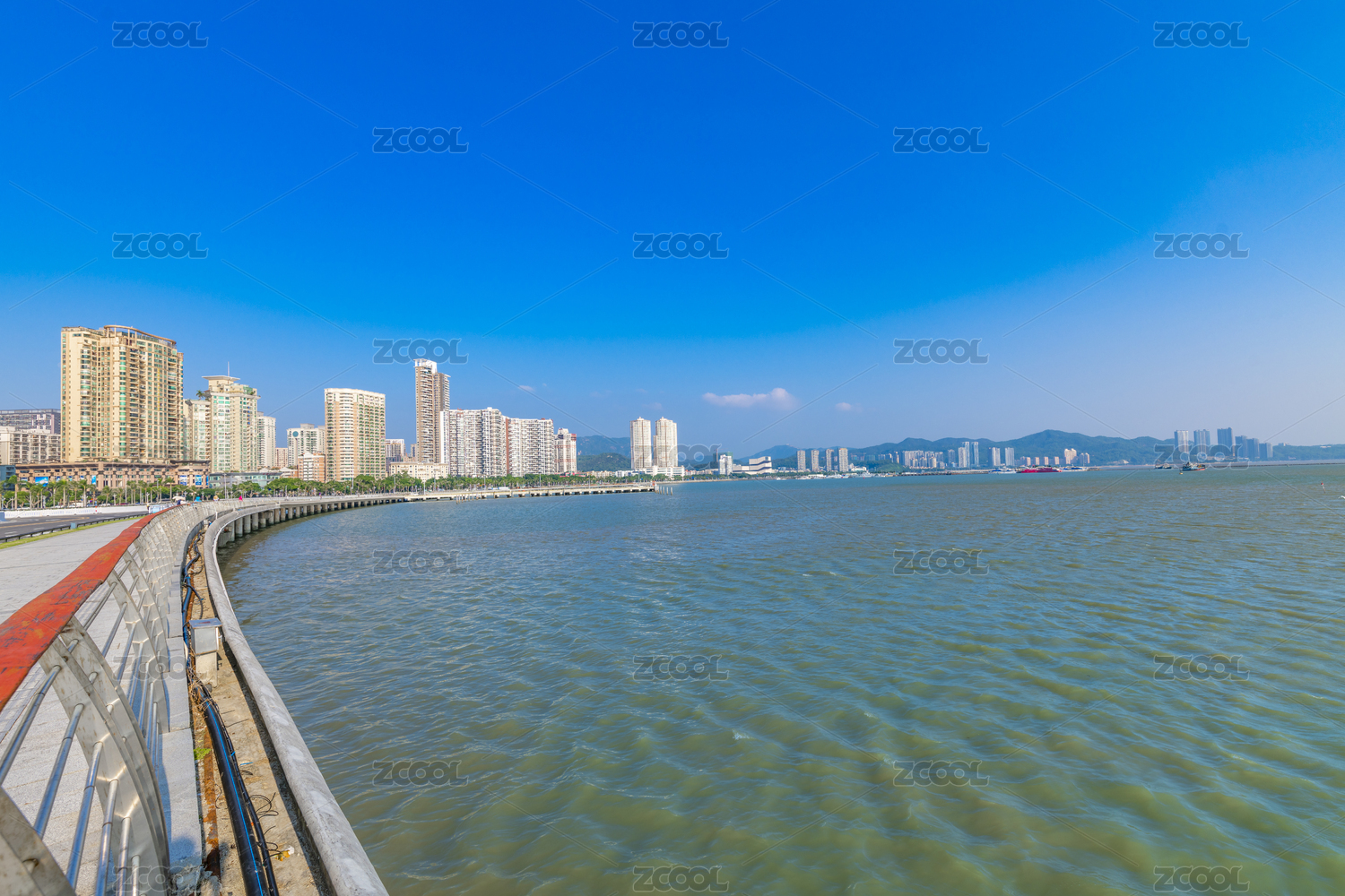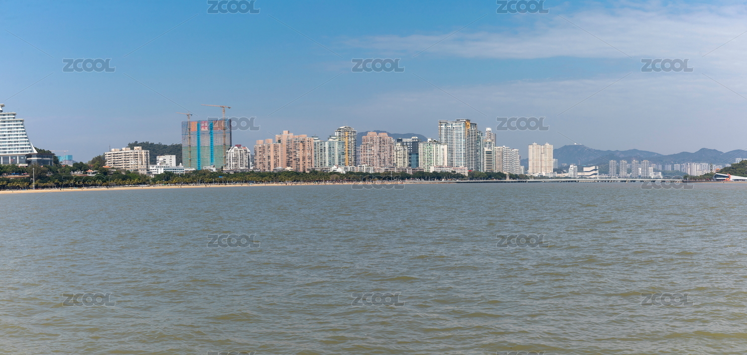 广东省珠海市情侣路野狸岛的城市海滨风光