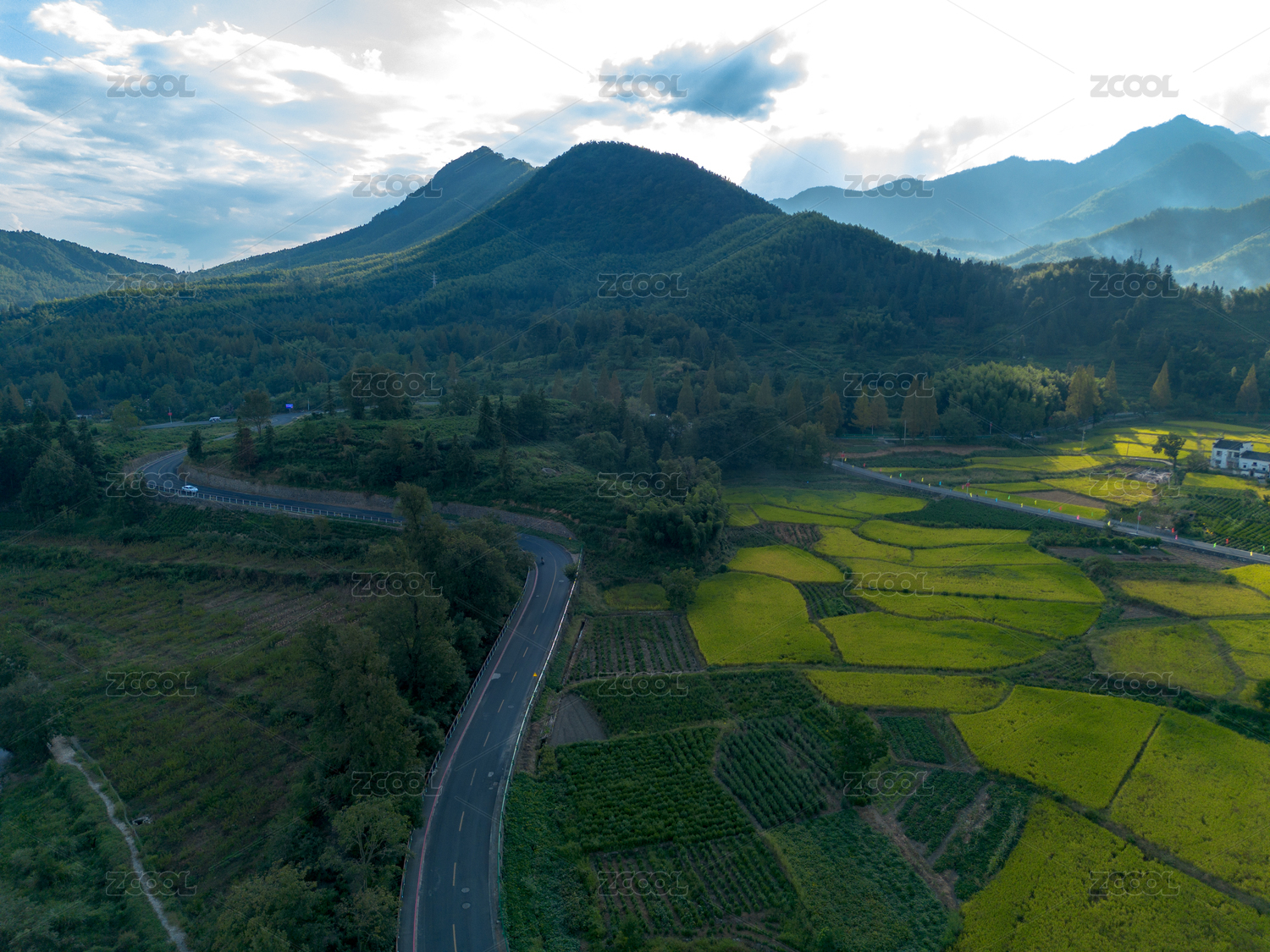 中国福建省顺昌县慈太村秋天稻田航拍风光