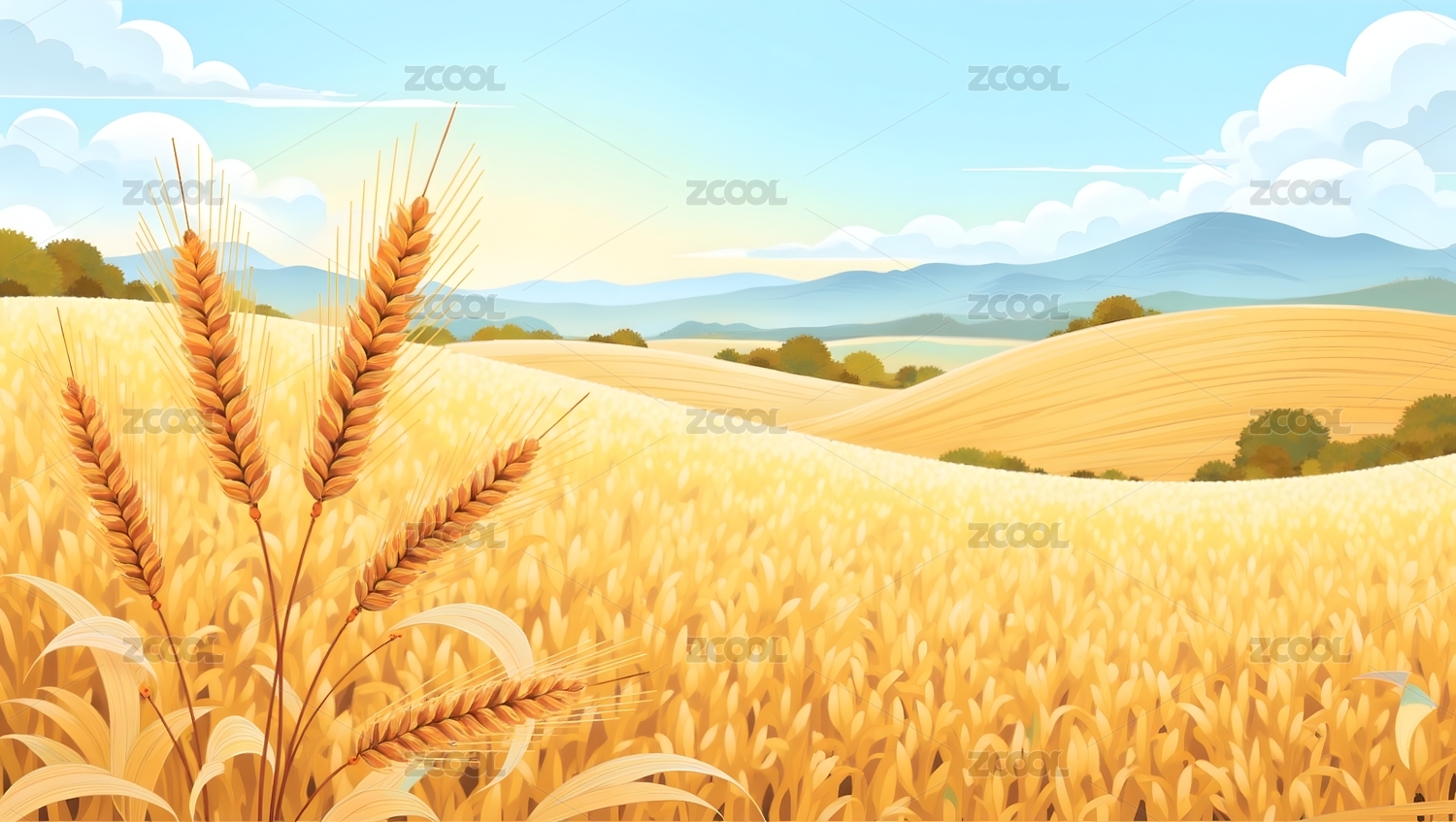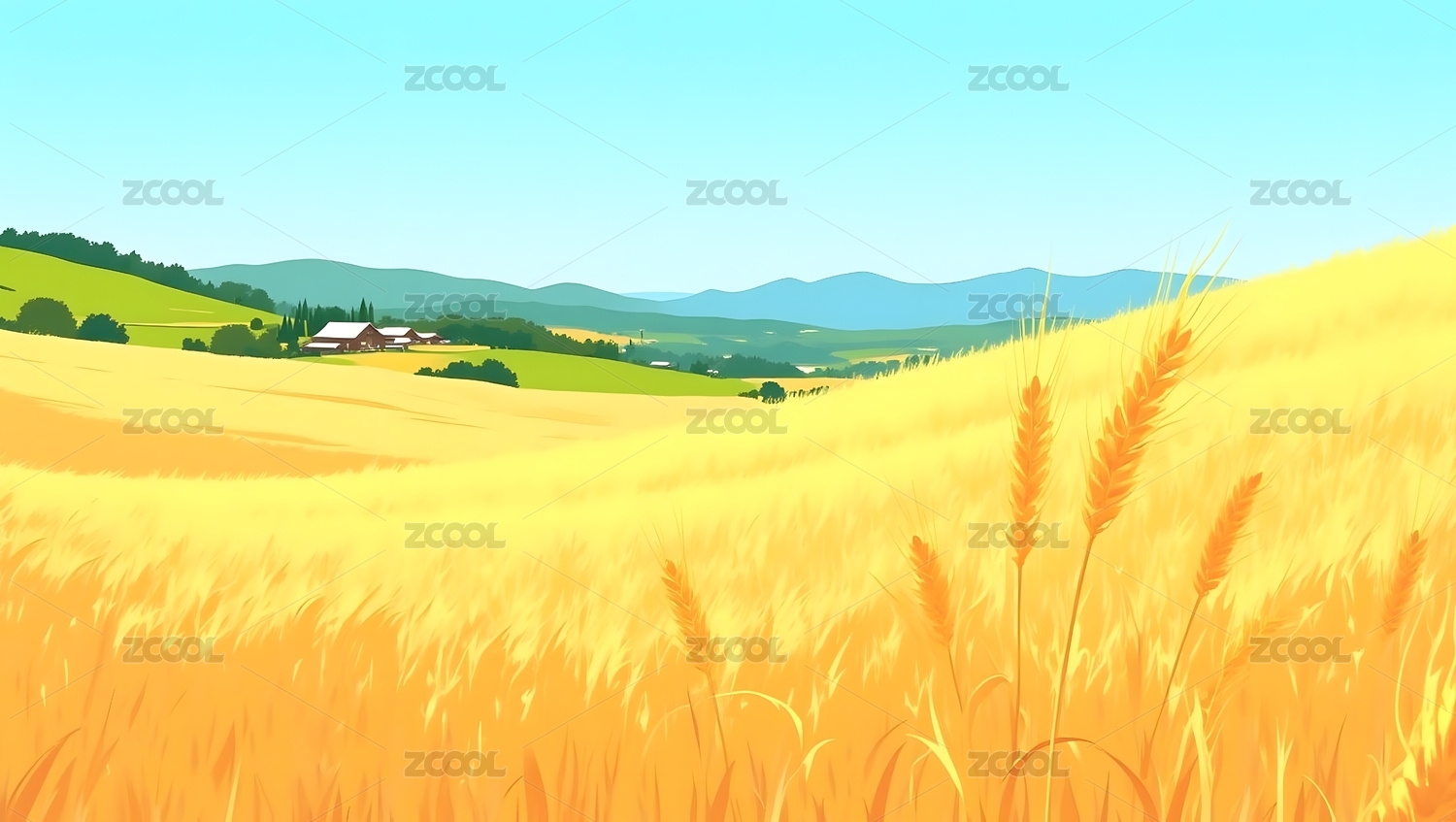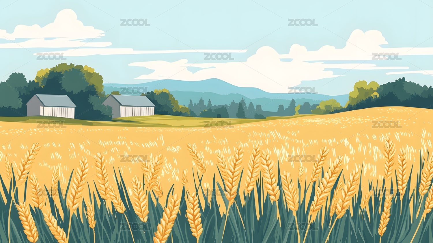 金色麦田插画