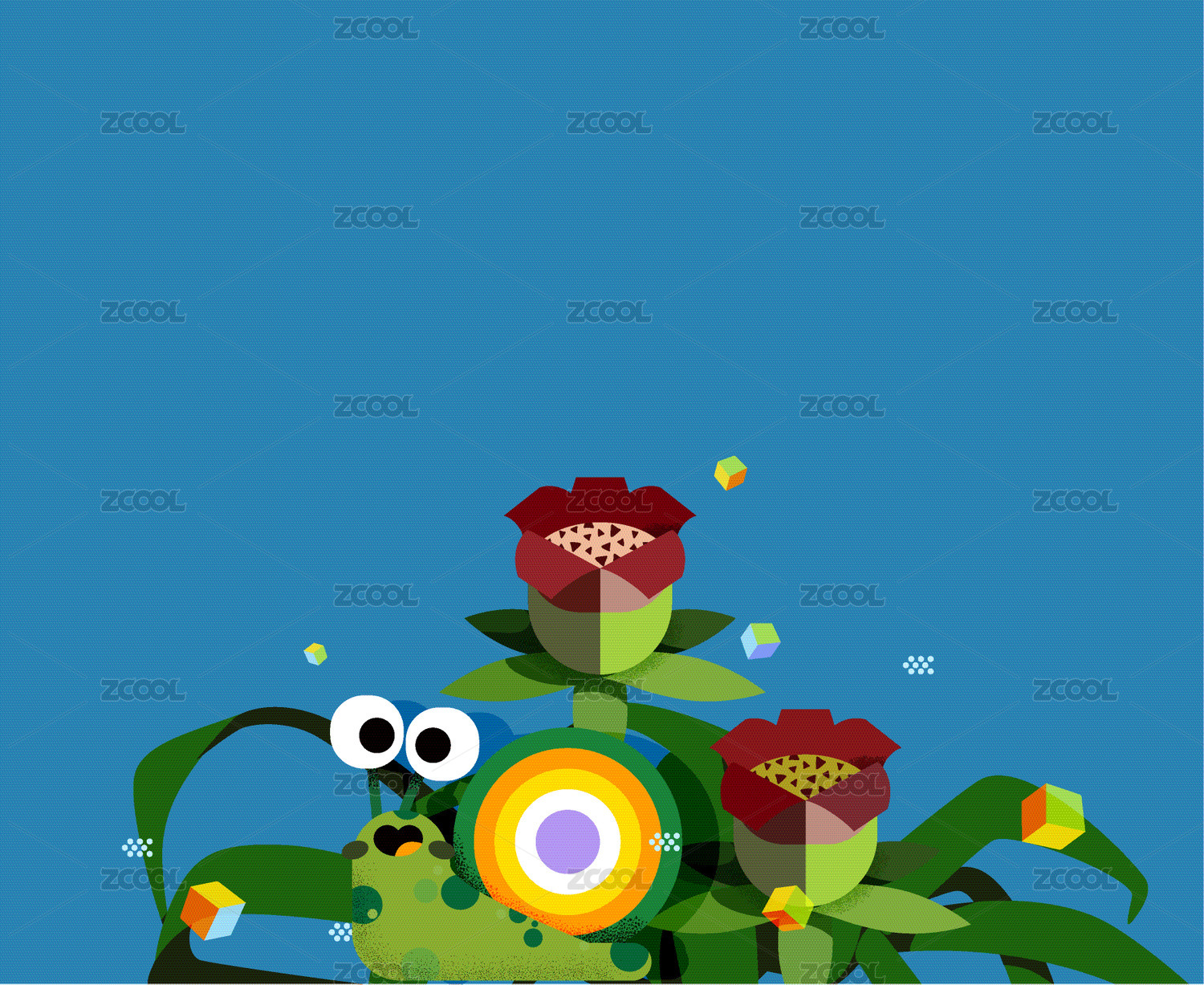花朵下的的彩虹蜗牛矢量插画