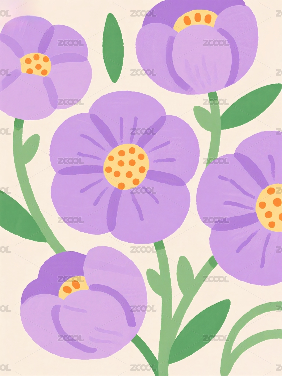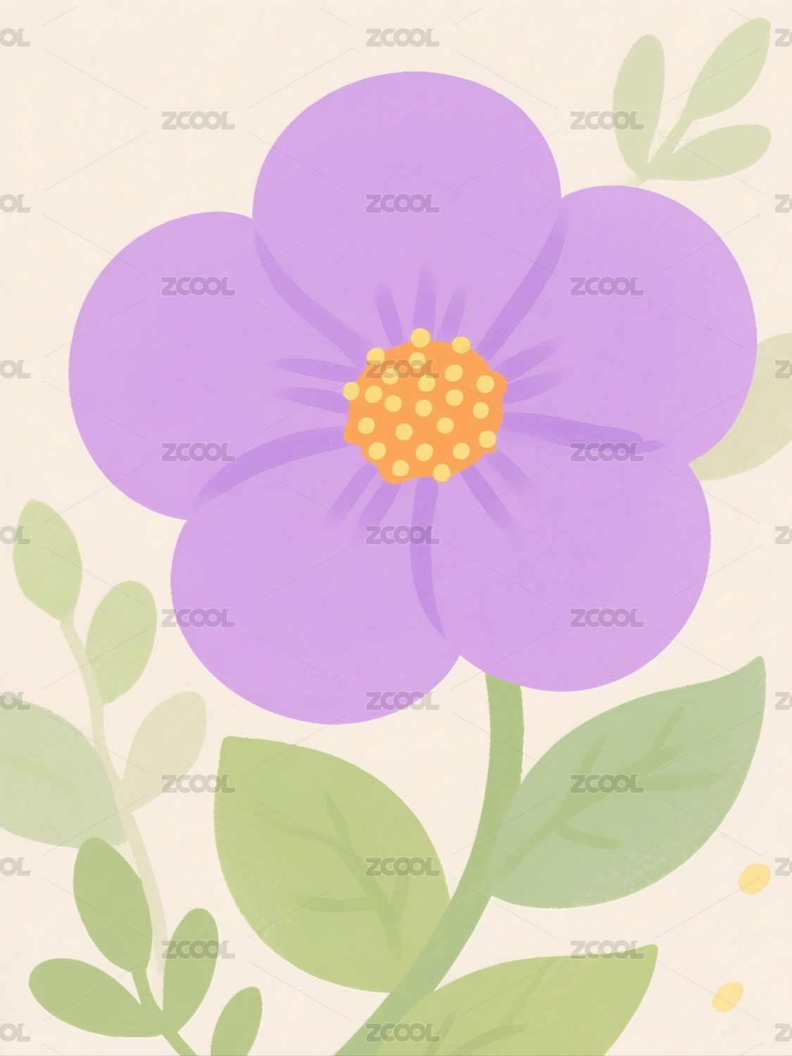 紫色花朵与叶子组成的卡通插画