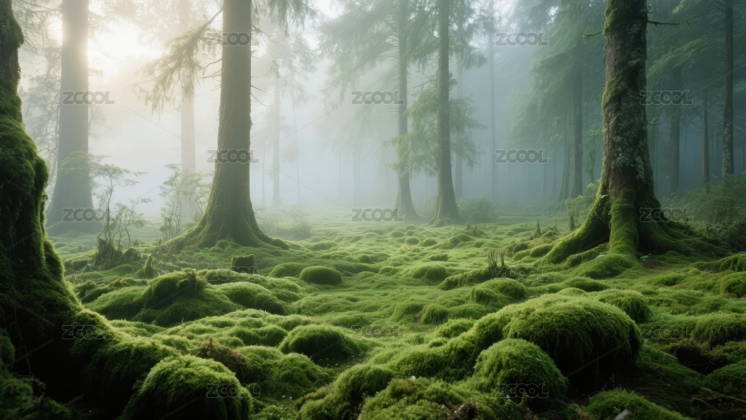 晨雾中的苔藓森林