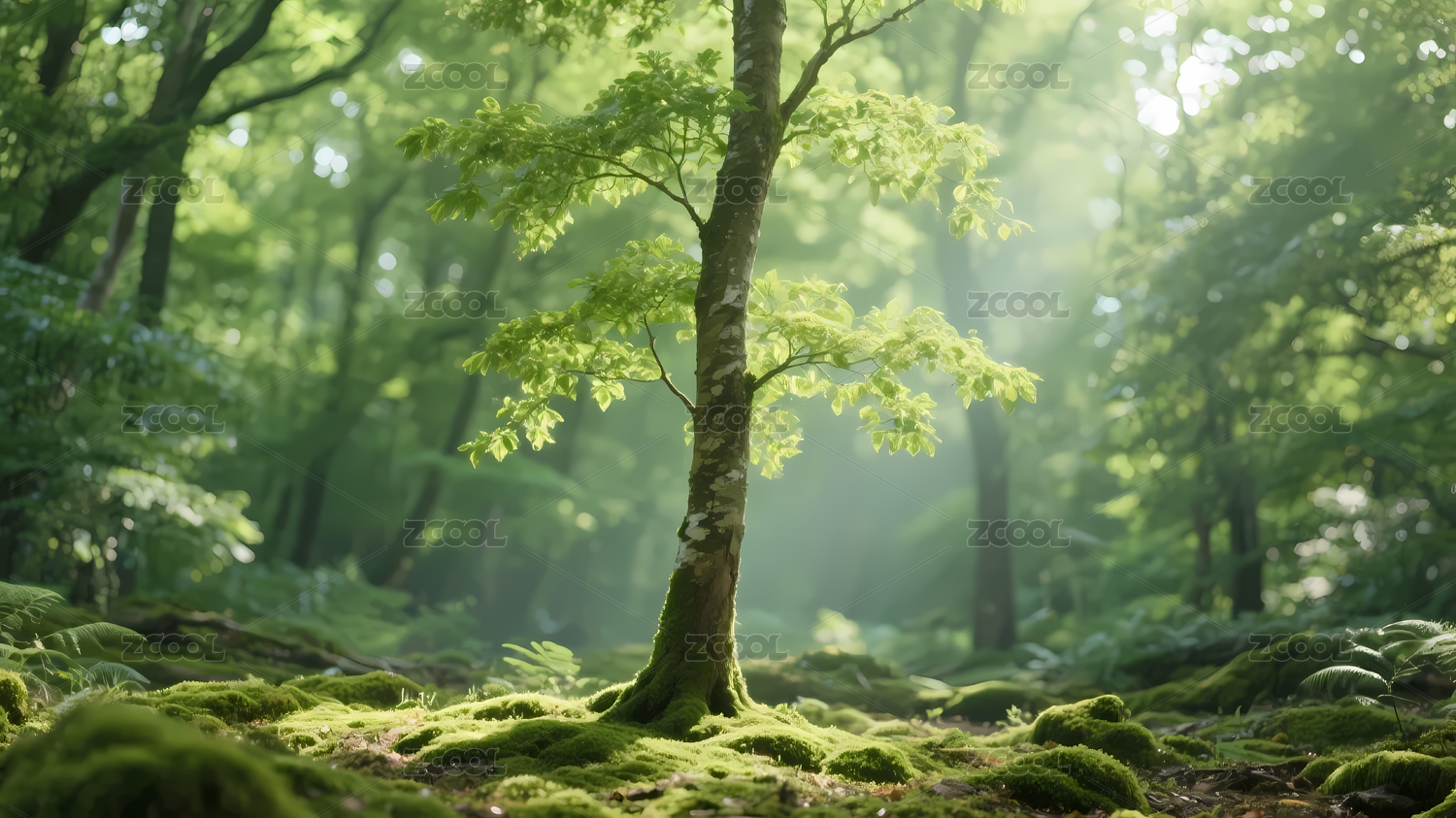 苔藓树木与斑驳光影
