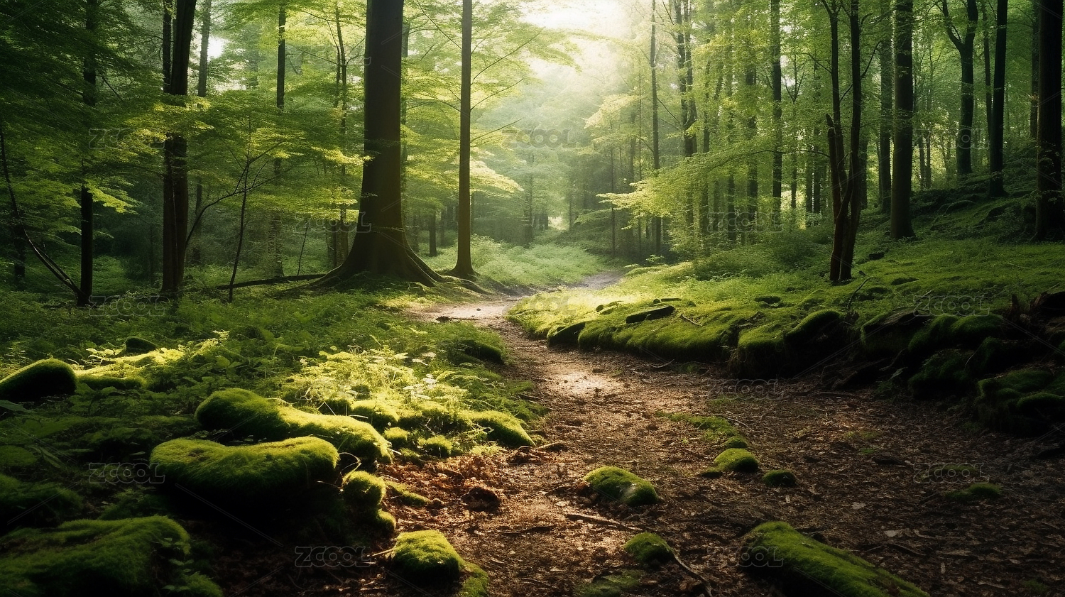 青苔石径宁静森林