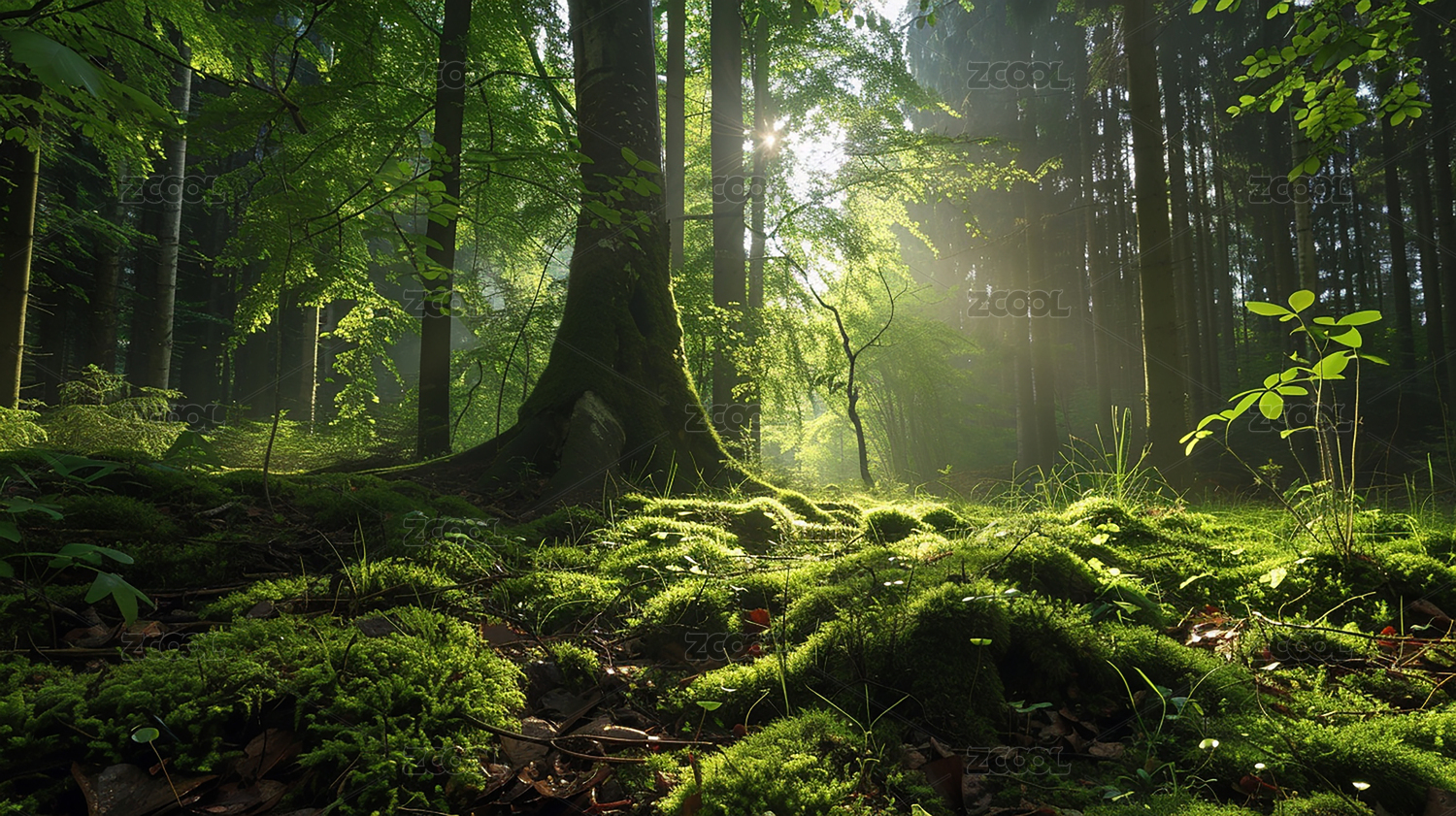 森林里苔藓阳光照射