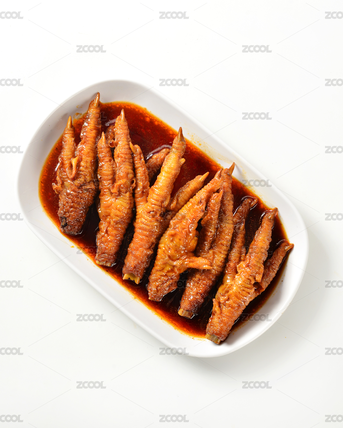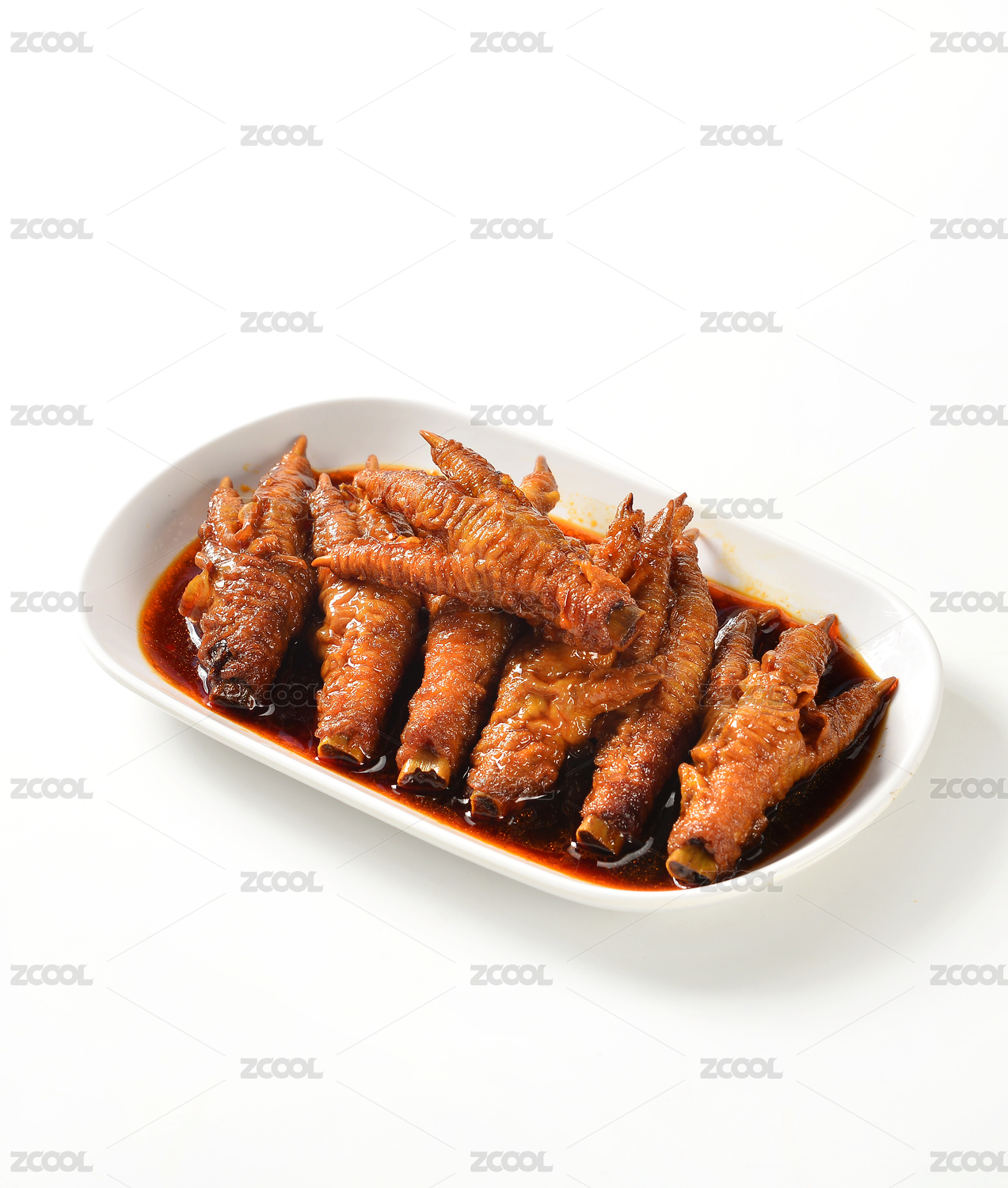 放在盘子里的方便熟食麻辣鸡爪凤爪