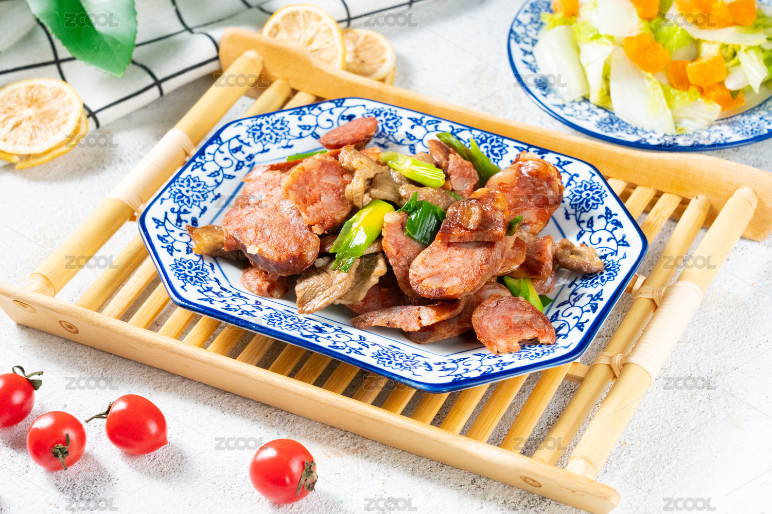 美味菜肴蒜苗辣椒小炒卤猪头肉