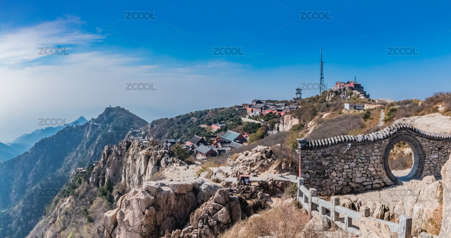 泰山极顶风光蓝天白云