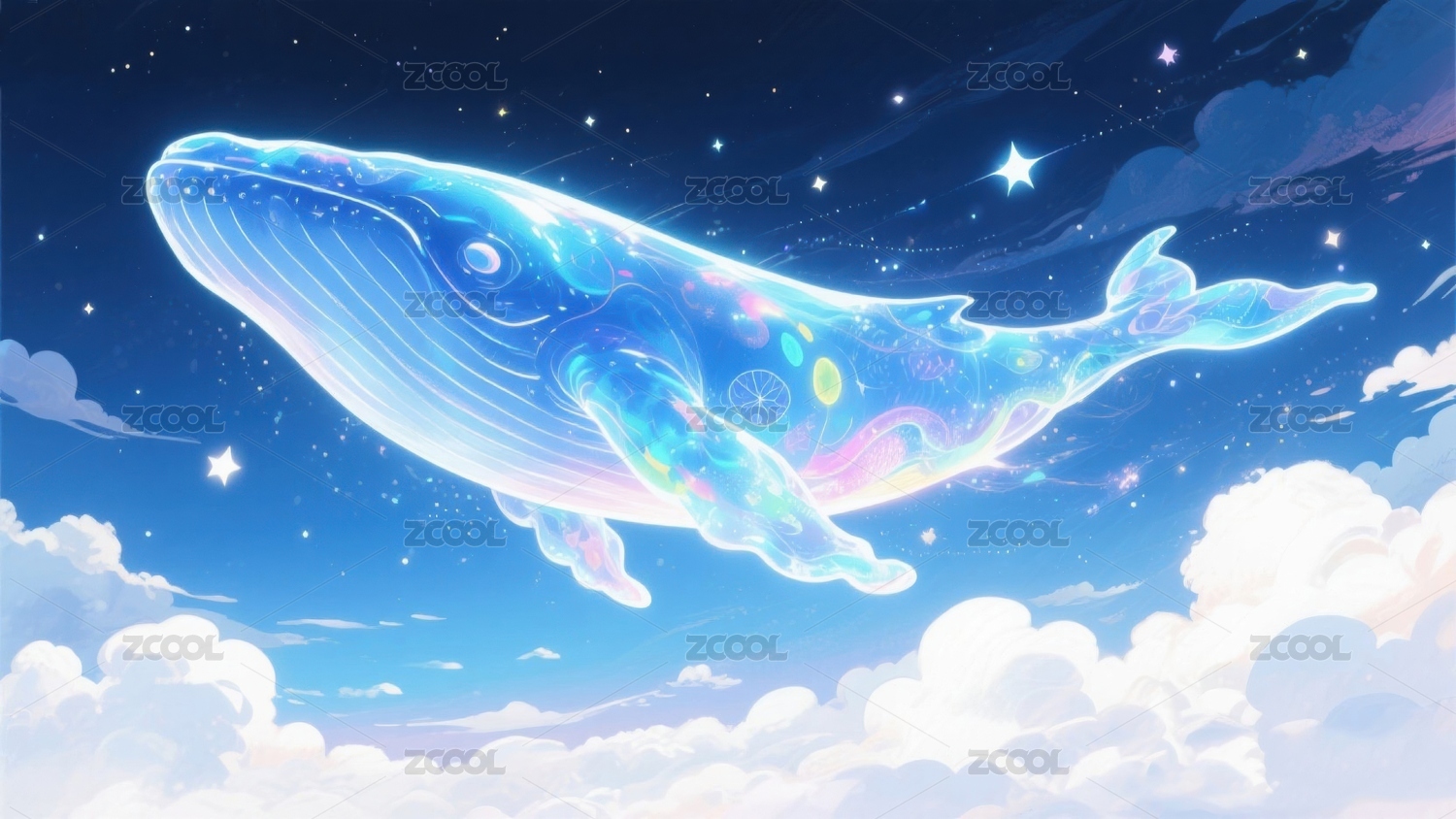 彩色,背景,天空,建筑,鲸鱼,飞行,插画