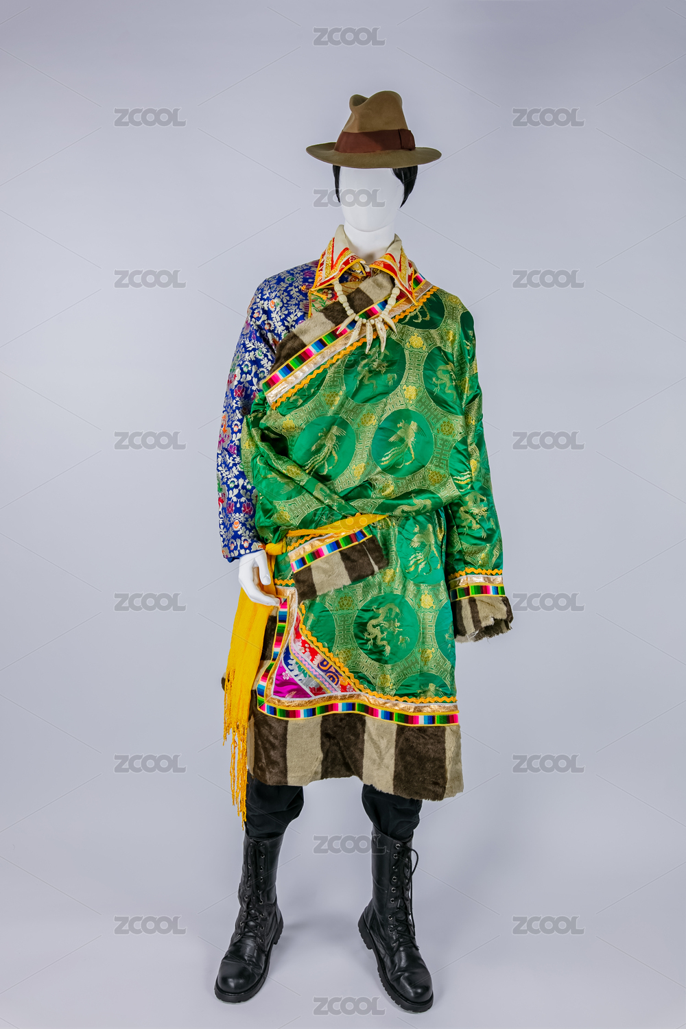中国藏族男式绣花绸缎衬衫内衣服饰
