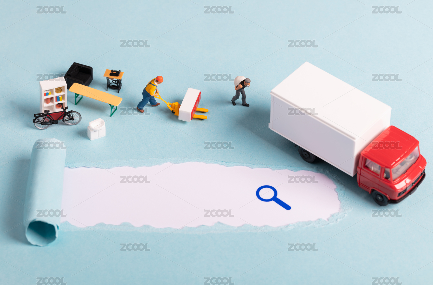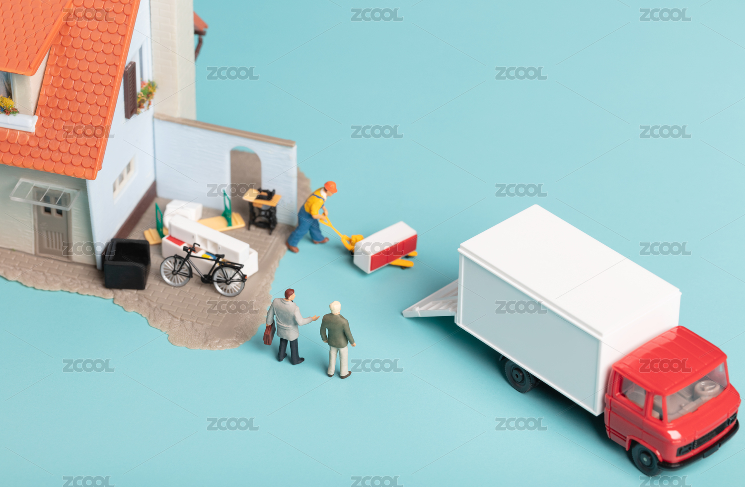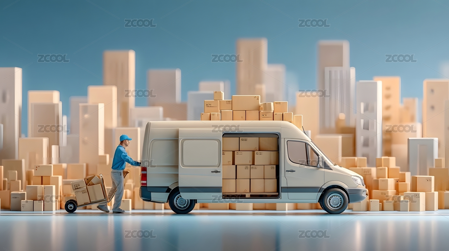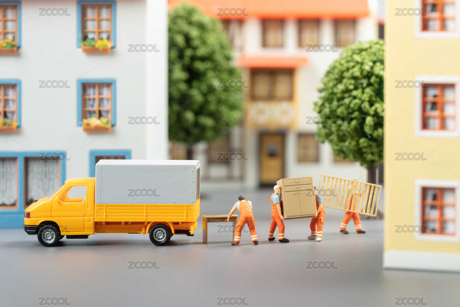 微缩创意新建大楼卡车货运搬家公司专业团队
