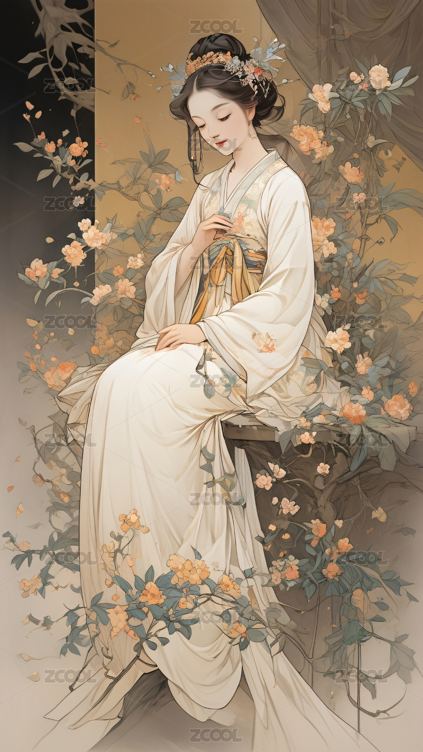 AIGCFG,水墨风,女,女子,古代女子,唯美