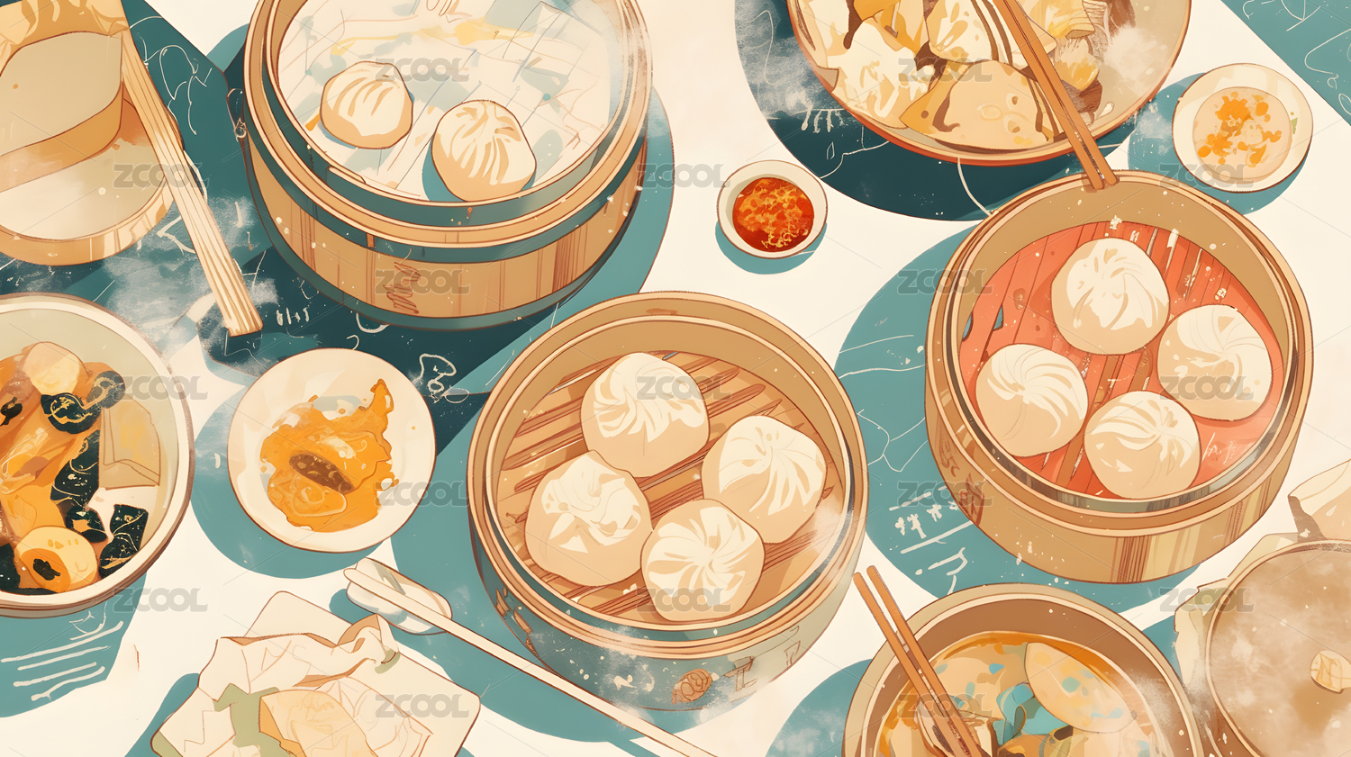 AIGCFG,国潮,早餐,包子,点心,广式点心