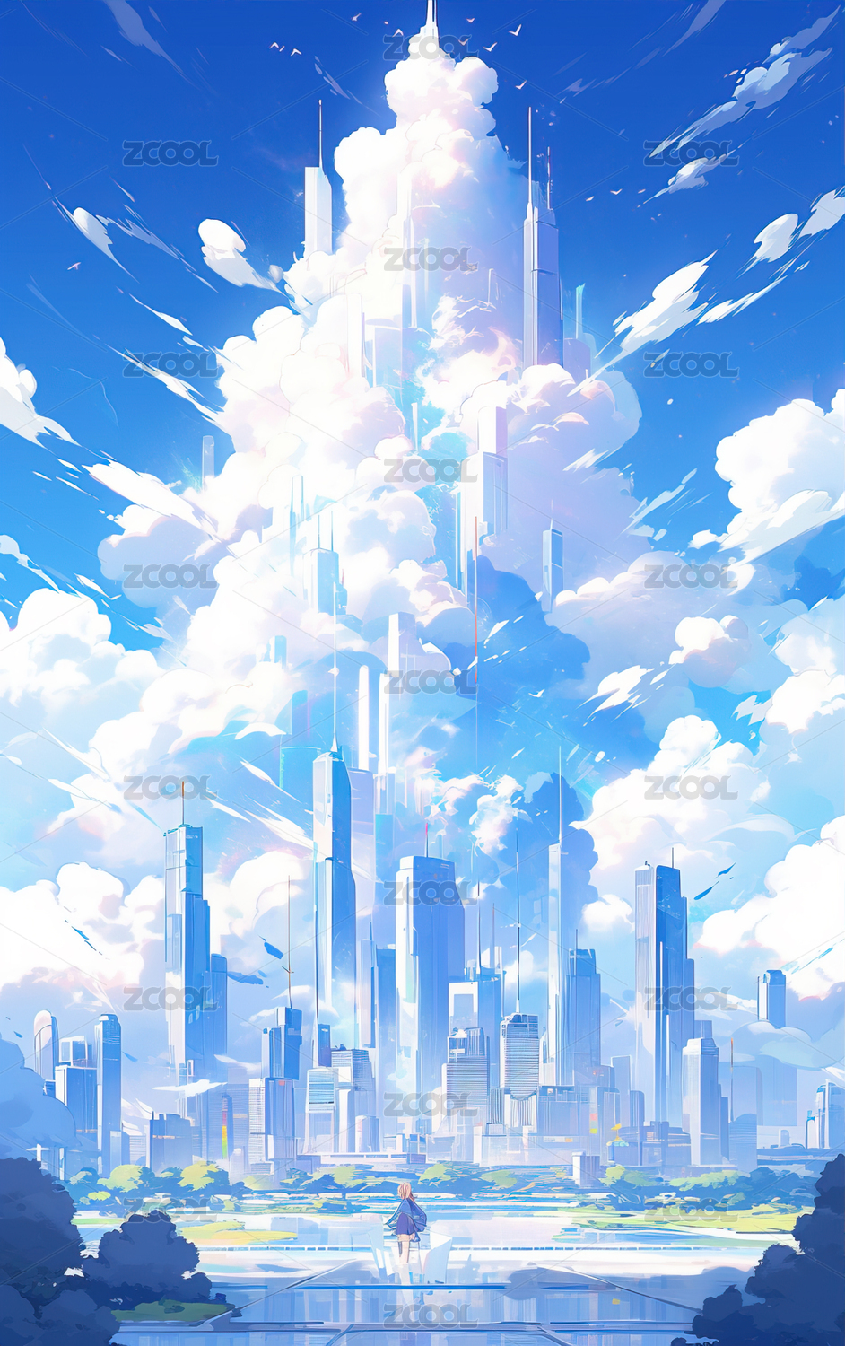 动漫,宏伟,大气,建筑,景观,开阔,梦幻,幻想,未来主义,蓝色