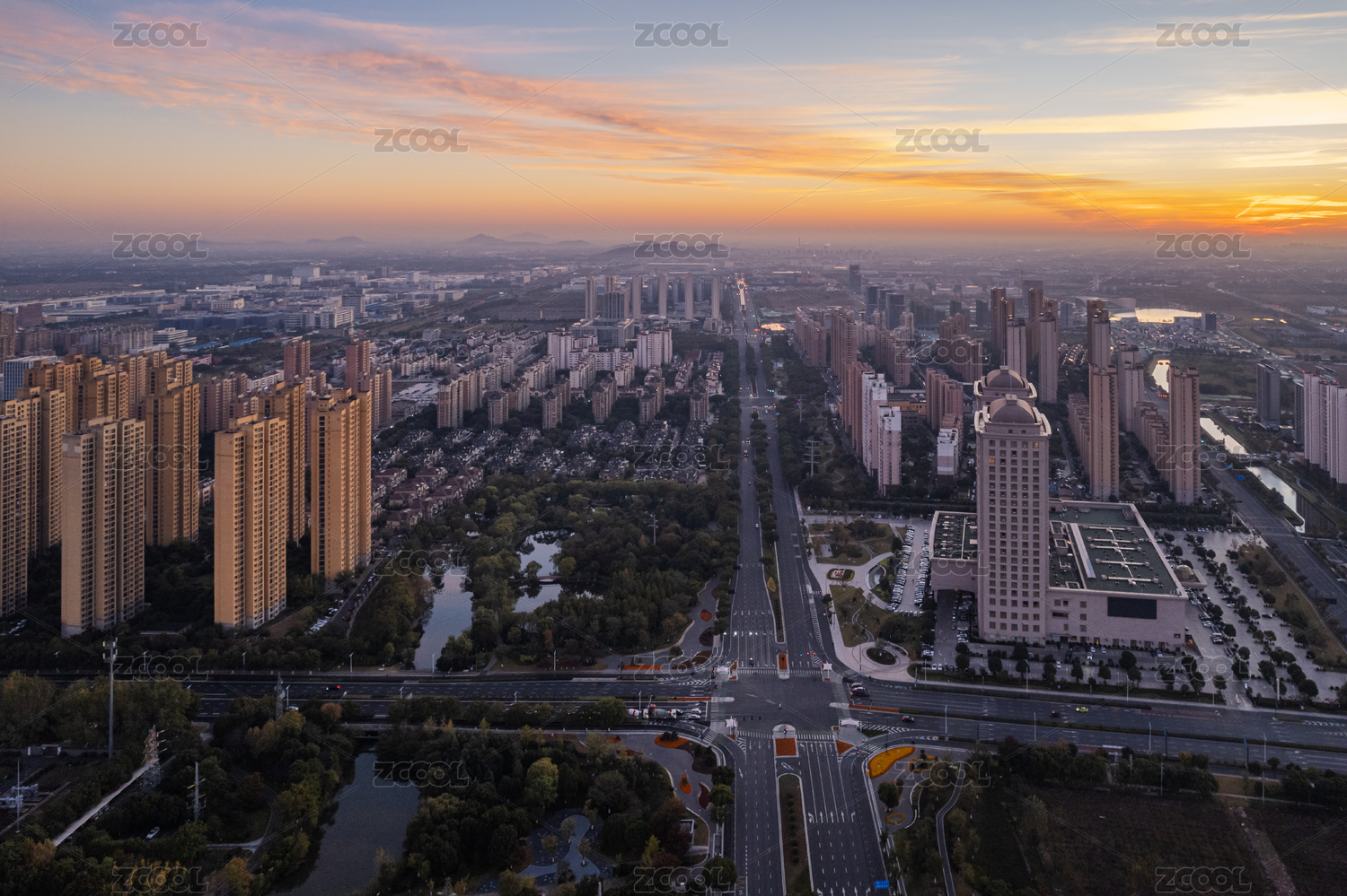 中国江苏省海安市黄昏主城区高楼大厦建筑