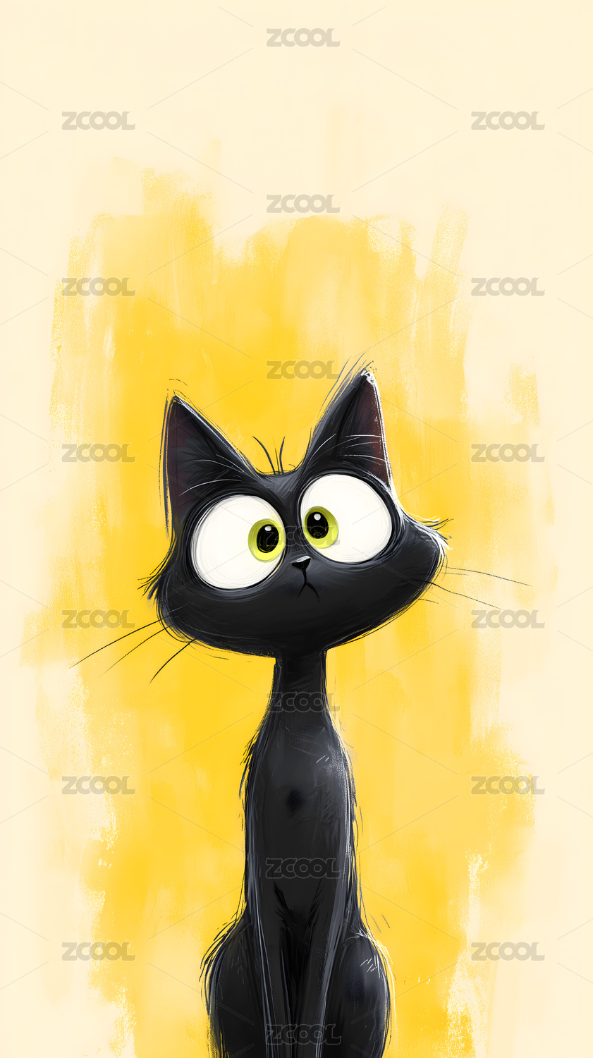 黄色小猫雏菊卡通可爱插画扁平贴纸