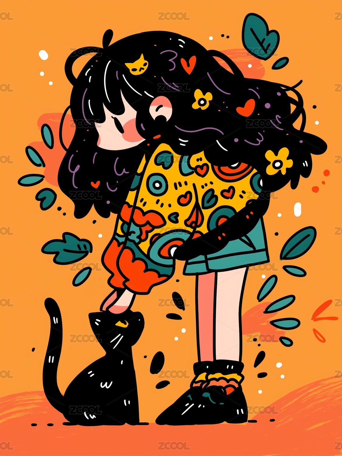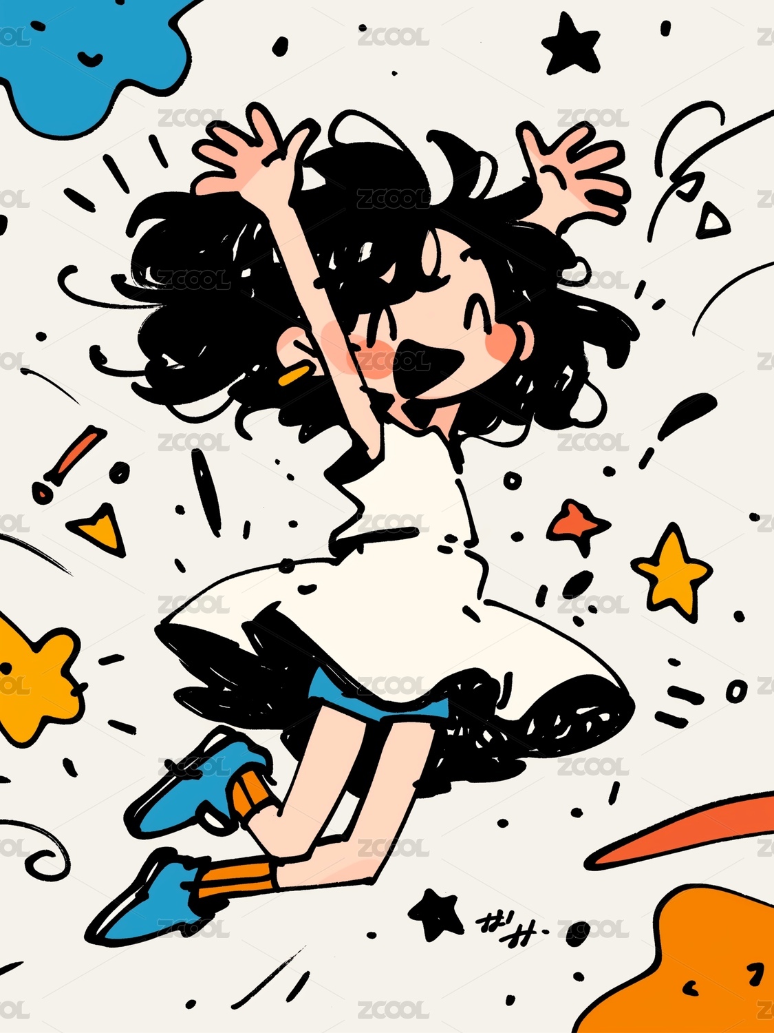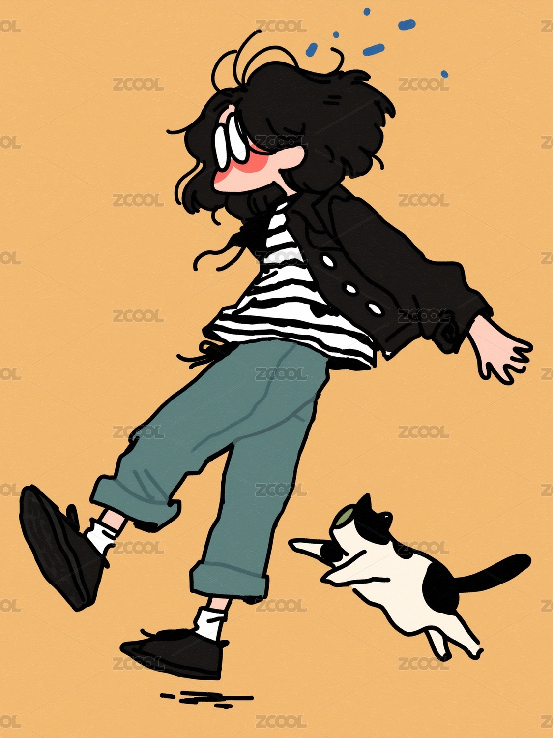 跳舞,女孩,猫咪,插画,涂鸦风,简笔画