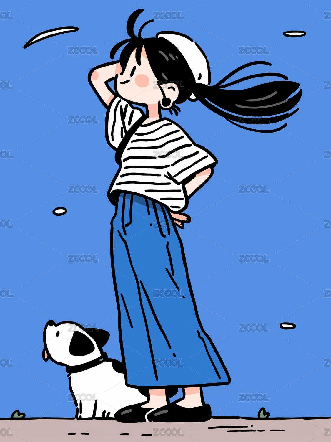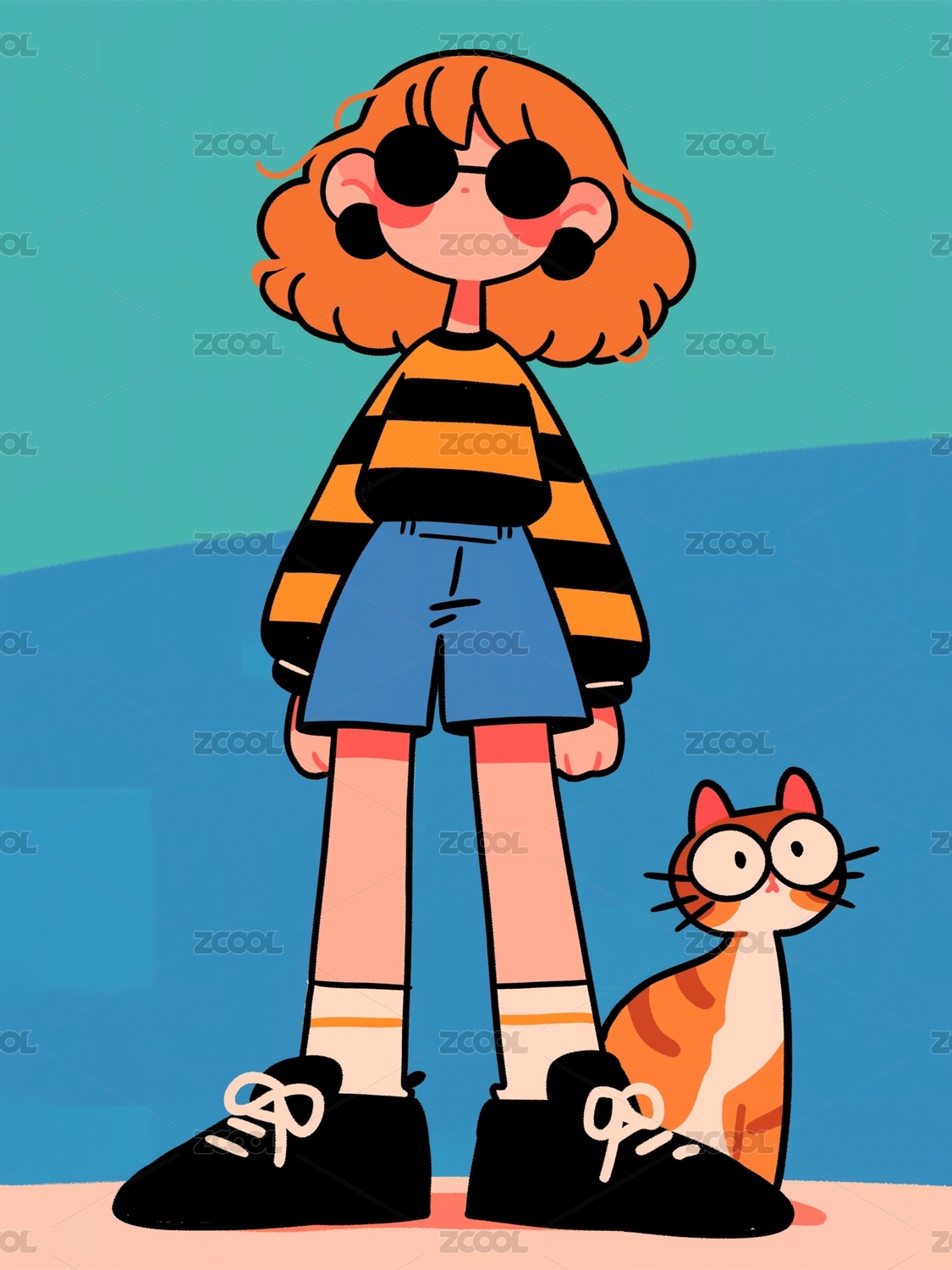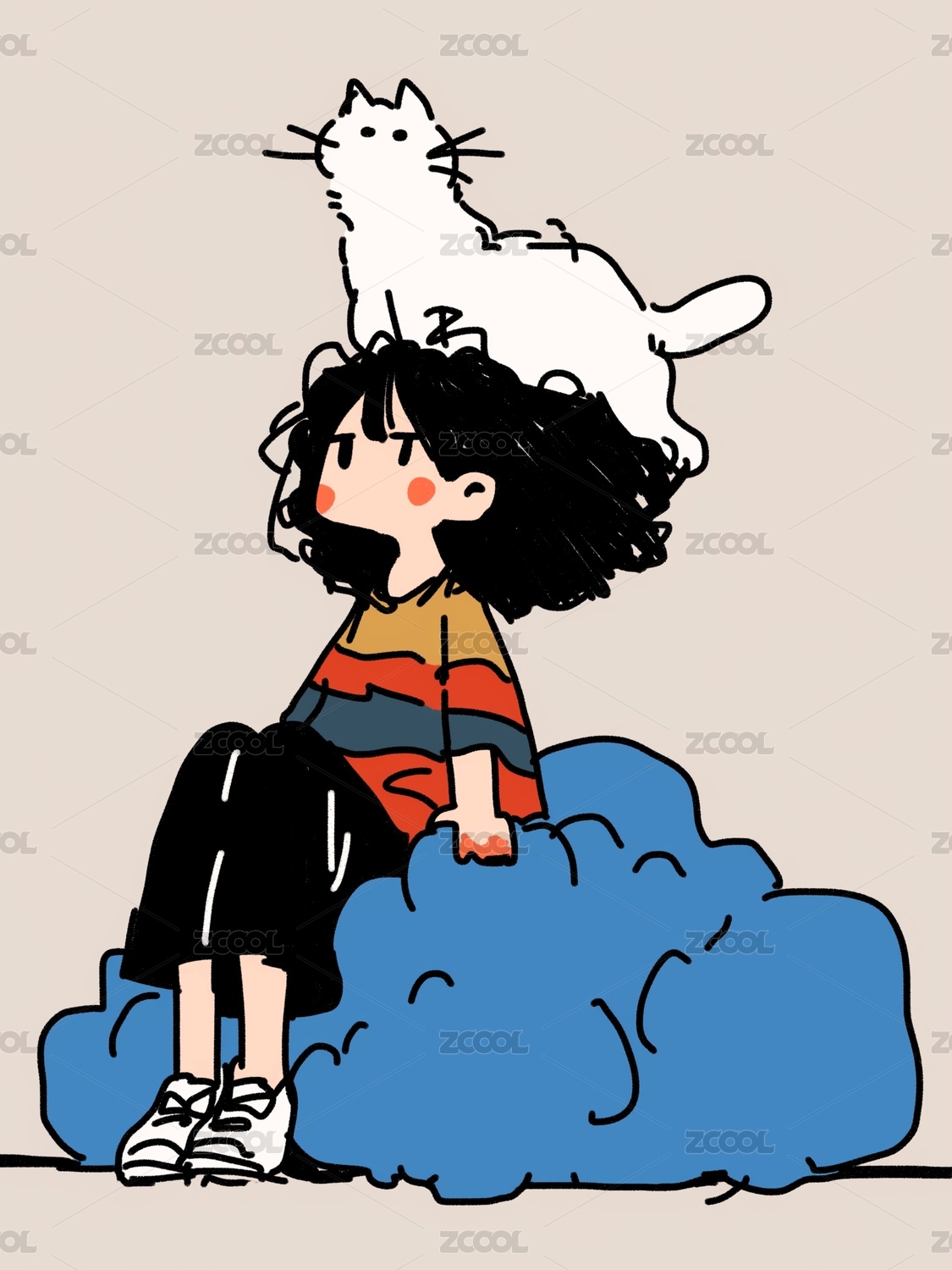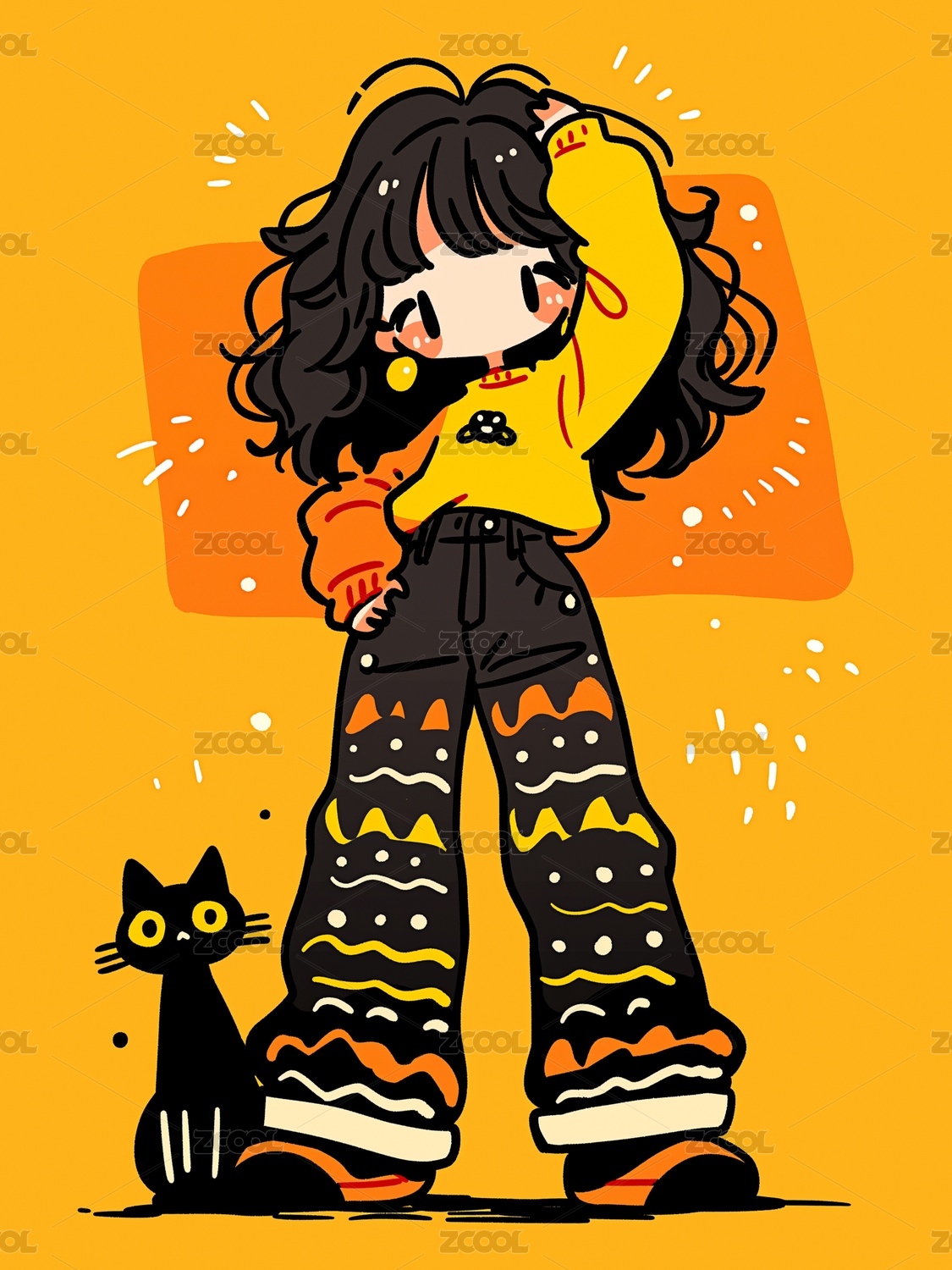 跳舞,女孩,猫咪,插画,涂鸦风,简笔画