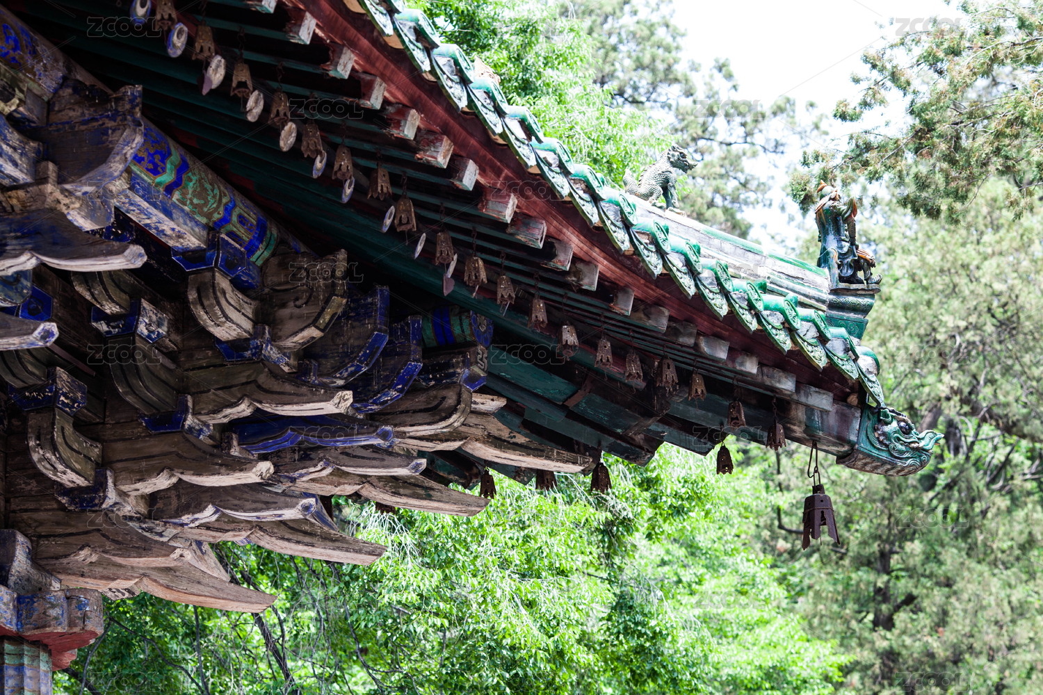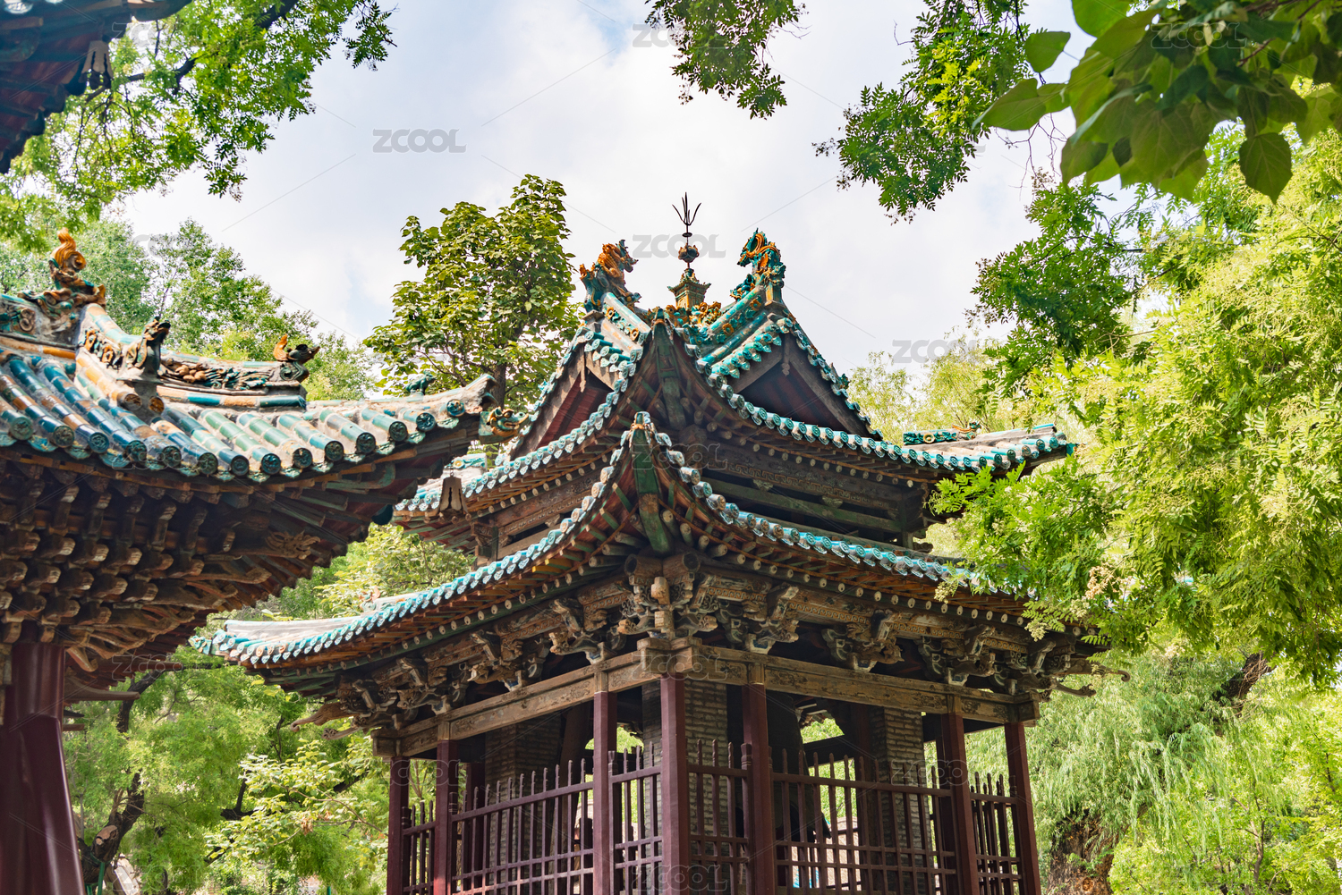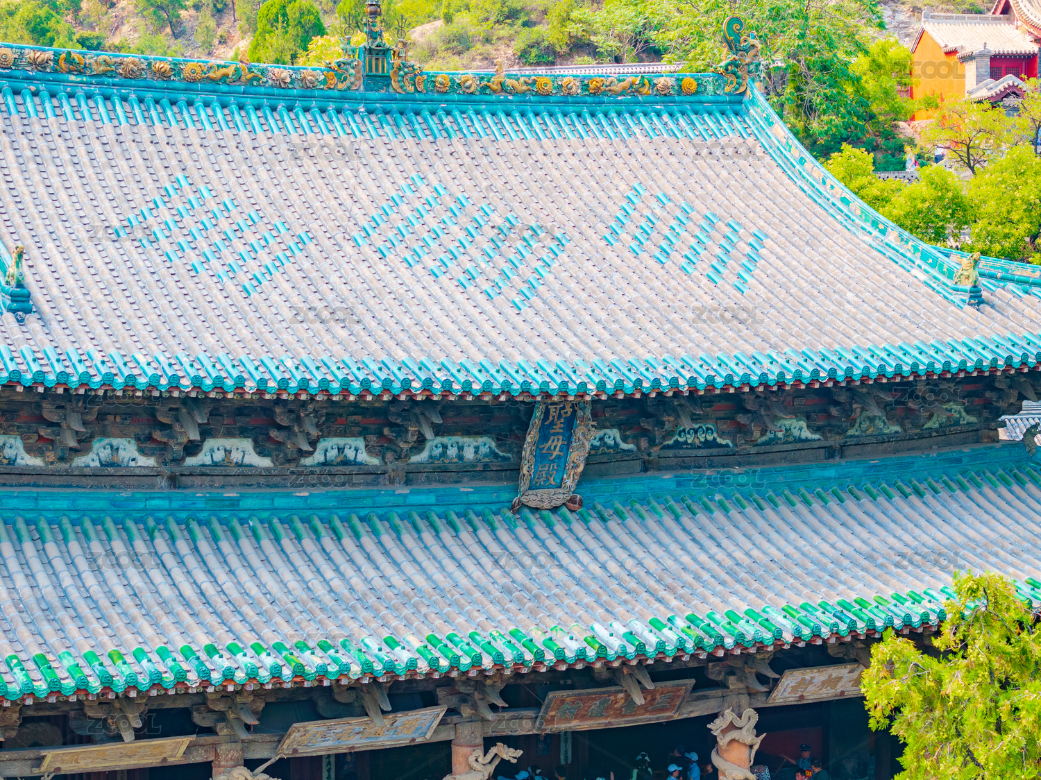 中国山西省恒山景区屋檐斗拱装饰园林建筑